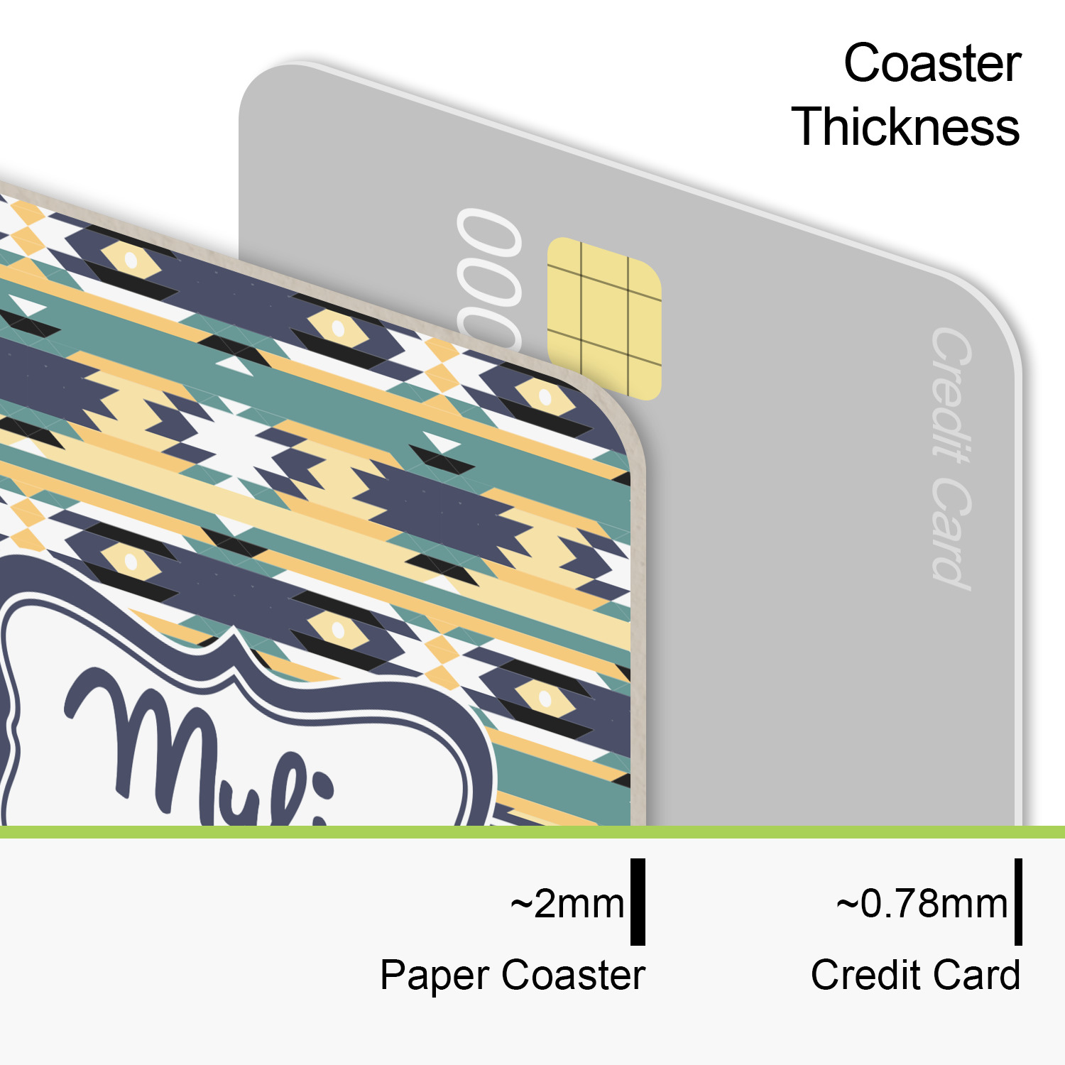 These coasters are perfectly sized for just about any drink being a 4"in square. The paper construction is a thick heavyweight 80 point pulpboard perfect for absorbing the condensation on the outside of your glass.