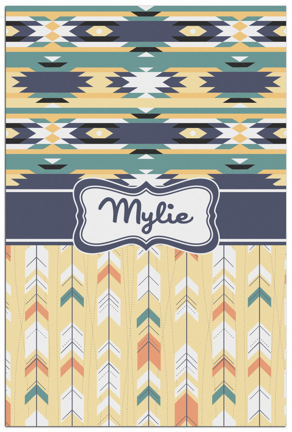 This fun, tribal design features stitched multicolored horizontal stripes on the top, and vertical arrows across the bottom. The two patterns are rather contradicting, but the overall effect is mesmerizing.