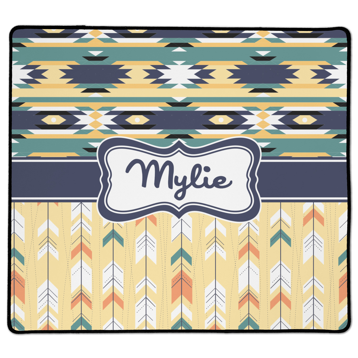 This fun, tribal design features stitched multicolored horizontal stripes on the top, and vertical arrows across the bottom. The two patterns are rather contradicting, but the overall effect is mesmerizing.