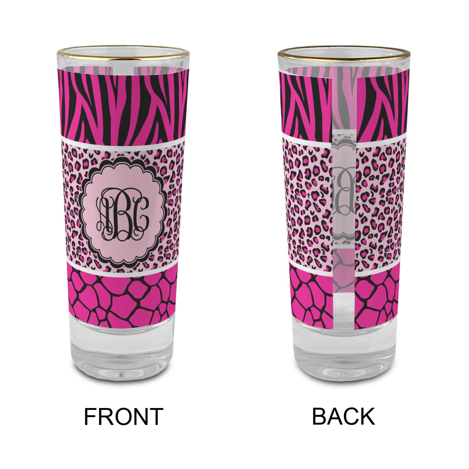 These glass shooter glasses are printed in full color with the design of your choice. These are a tall shooter 2 oz size and stand 4" tall. The print is a full wrap design to boldly display your personalization.