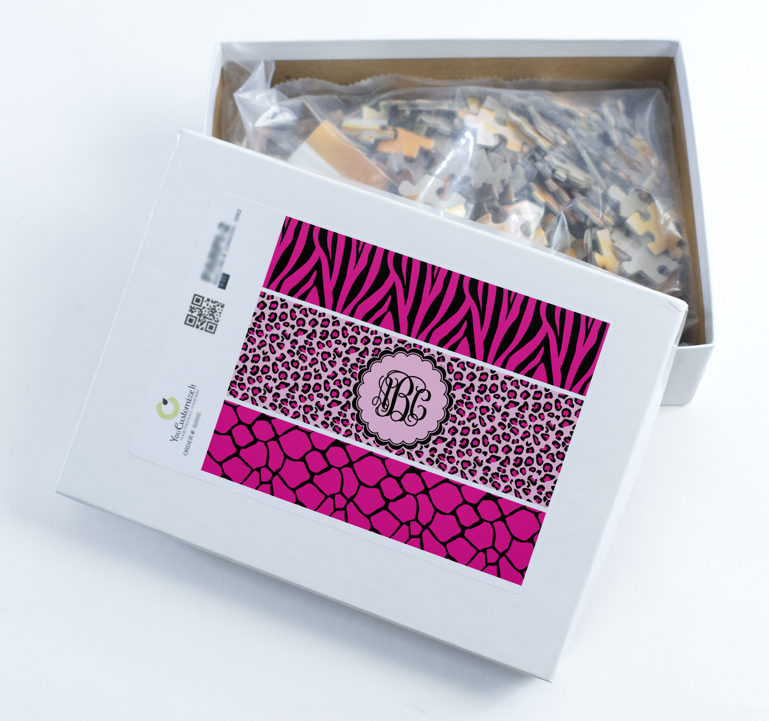 You can also upload your logo or art that you or your kids drew. To create more challenging jigsaw puzzles, you can create a pattern from with your logo or artwork. You can also add other elements such as text or personalization.
