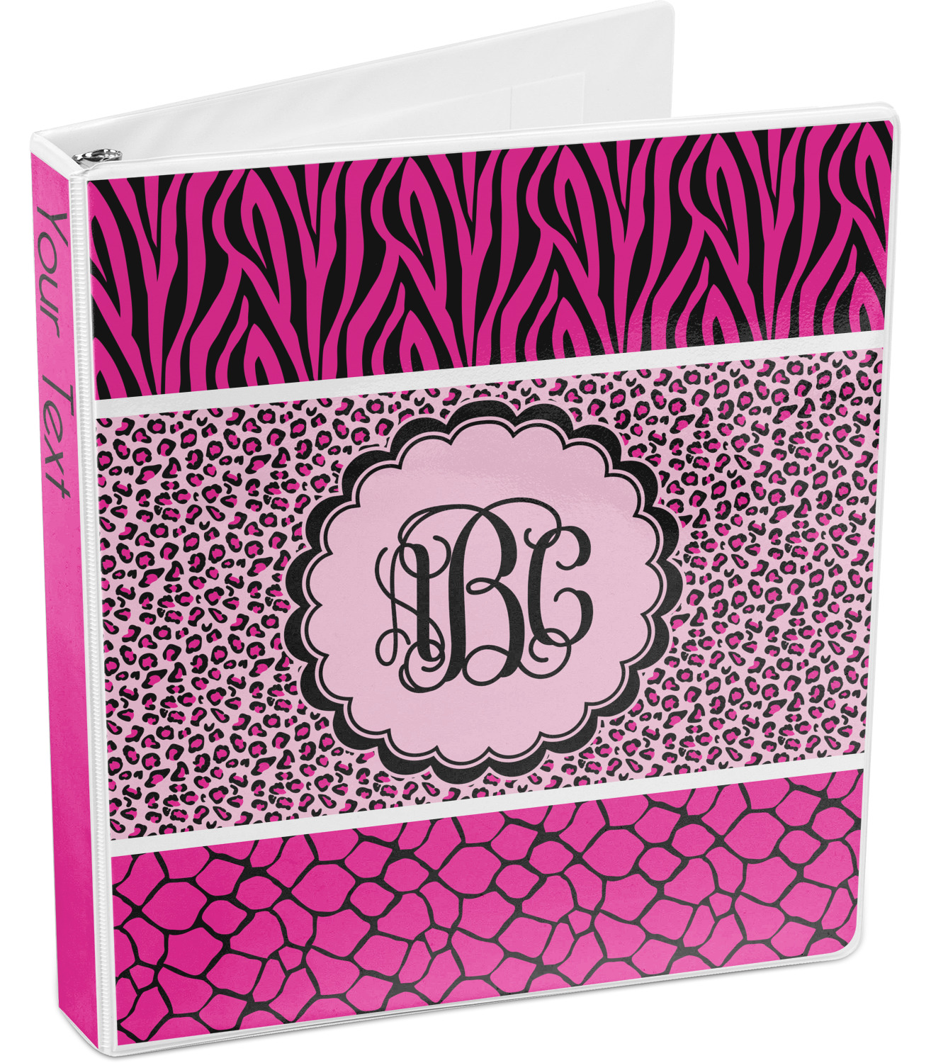 This over top triple animal prints (zebra, leopard & giraffe) is definitely for the person who LOVES animal prints. The design has zebra print on top, leopard print in the middle and giraffe print on the bottom. We chose to feature this design in black, hot pink and baby pink, however, the design is completely re-color-able, so you are able to select any color combinations you desire. Also the order of the pattern is also customizable.