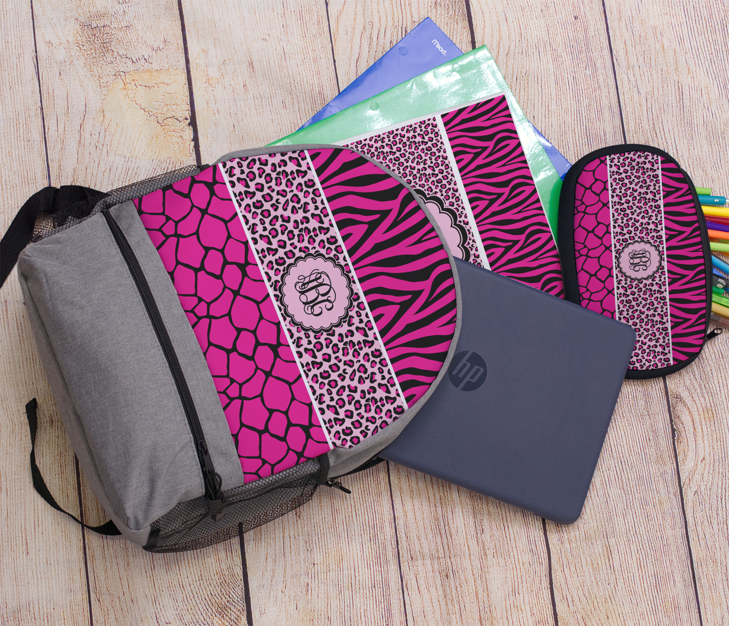 This over top triple animal prints (zebra, leopard & giraffe) is definitely for the person who LOVES animal prints. The design has zebra print on top, leopard print in the middle and giraffe print on the bottom. We chose to feature this design in black, hot pink and baby pink, however, the design is completely re-color-able, so you are able to select any color combinations you desire. Also the order of the pattern is also customizable.