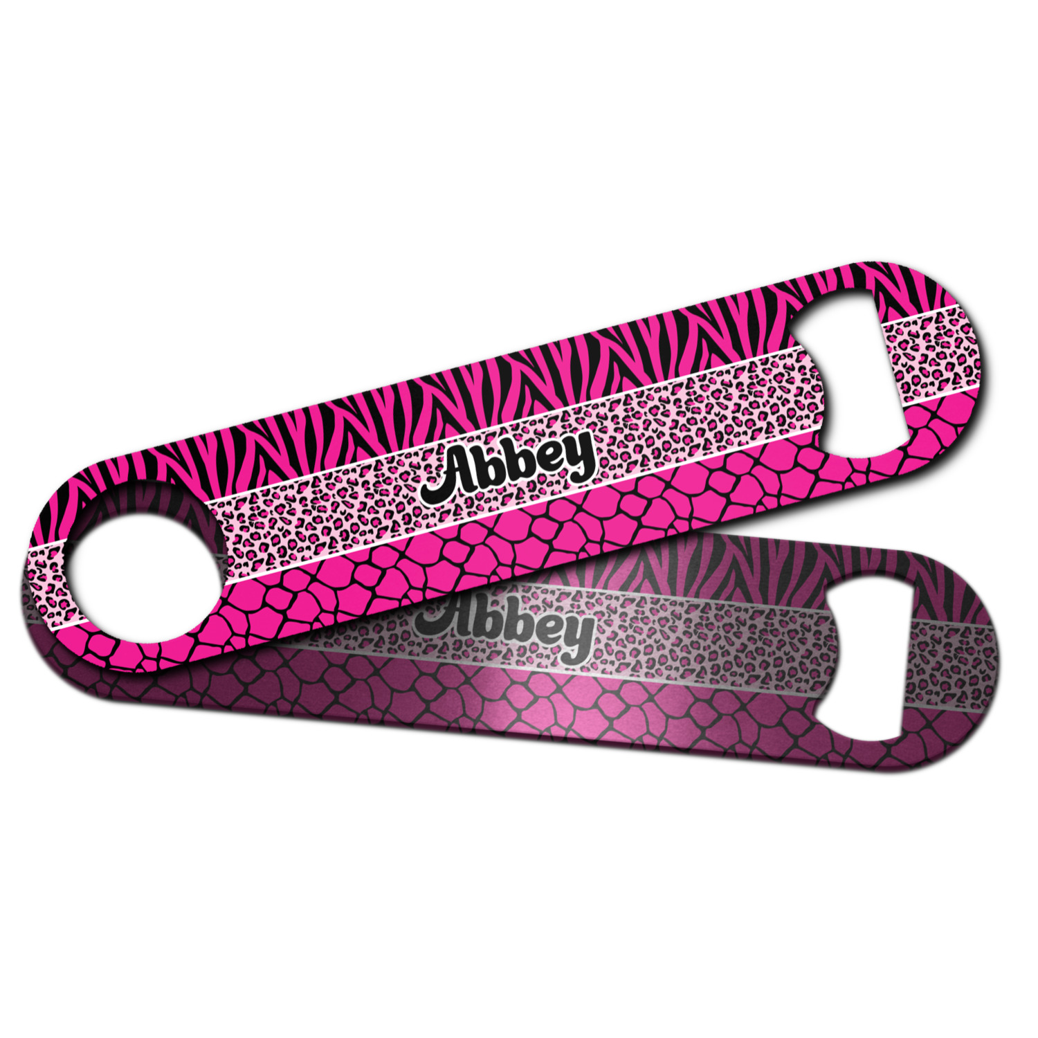 Stop struggling with the caps or your bottled beverages by purchasing one of our personalized bottle openers! These wrench-like custom bar blades are built to last. Customize one for your home's bar, or as a practical gift for a loved one!