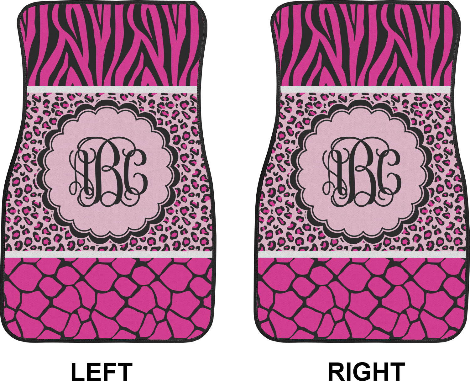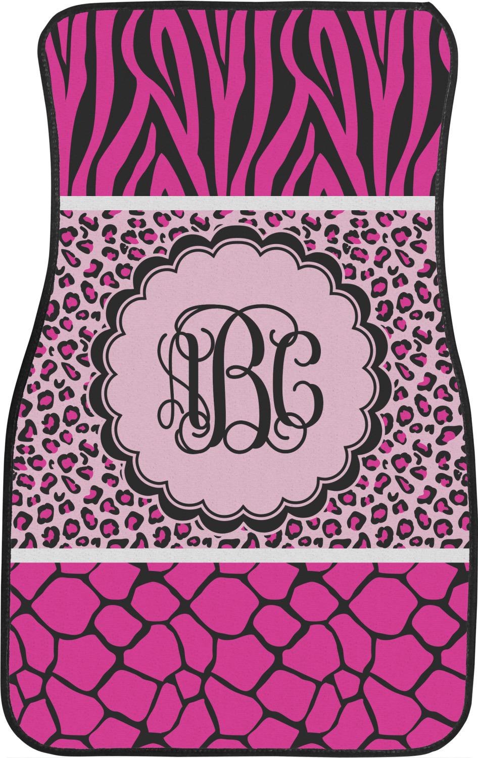 This over top triple animal prints (zebra, leopard & giraffe) is definitely for the person who LOVES animal prints. The design has zebra print on top, leopard print in the middle and giraffe print on the bottom. We chose to feature this design in black, hot pink and baby pink, however, the design is completely re-color-able, so you are able to select any color combinations you desire. Also the order of the pattern is also customizable.