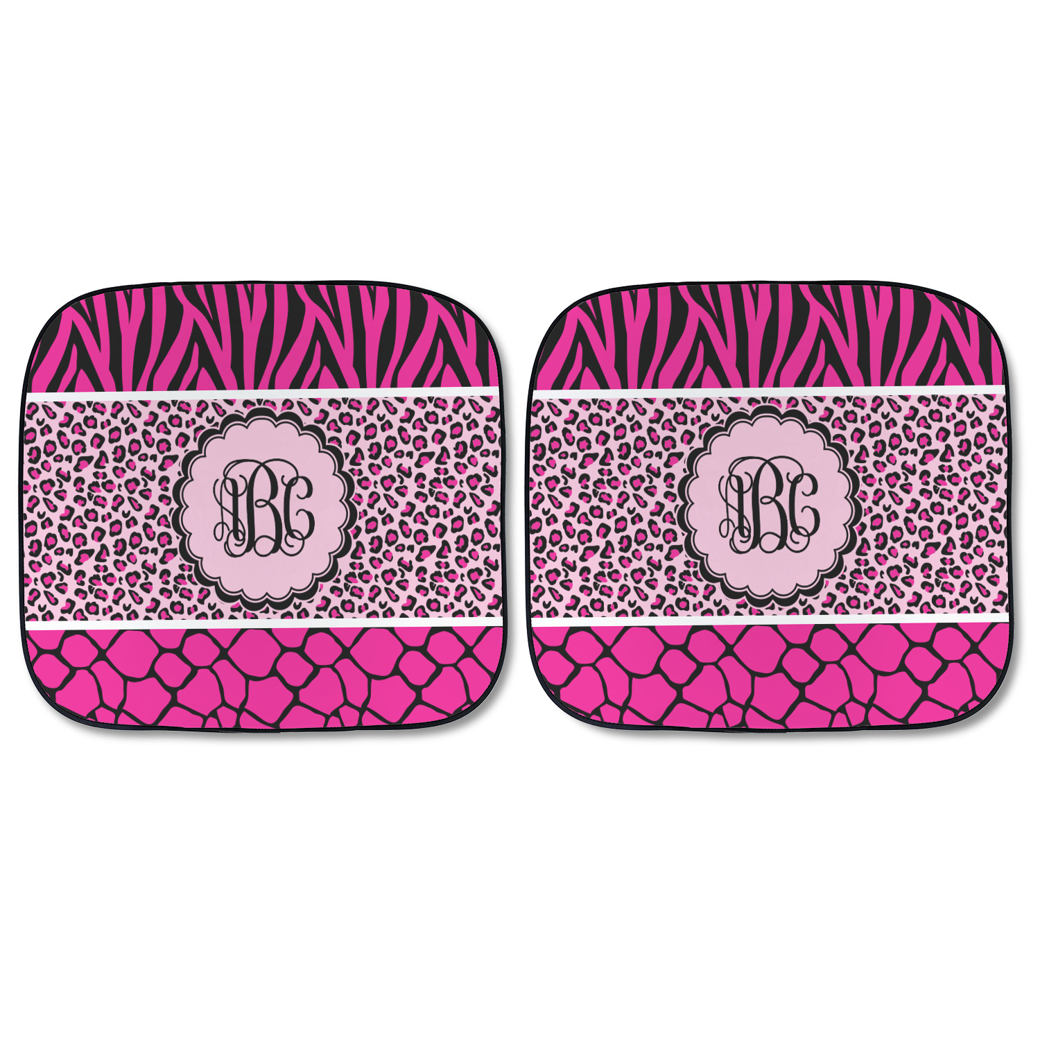 This over top triple animal prints (zebra, leopard & giraffe) is definitely for the person who LOVES animal prints. The design has zebra print on top, leopard print in the middle and giraffe print on the bottom. We chose to feature this design in black, hot pink and baby pink, however, the design is completely re-color-able, so you are able to select any color combinations you desire. Also the order of the pattern is also customizable.