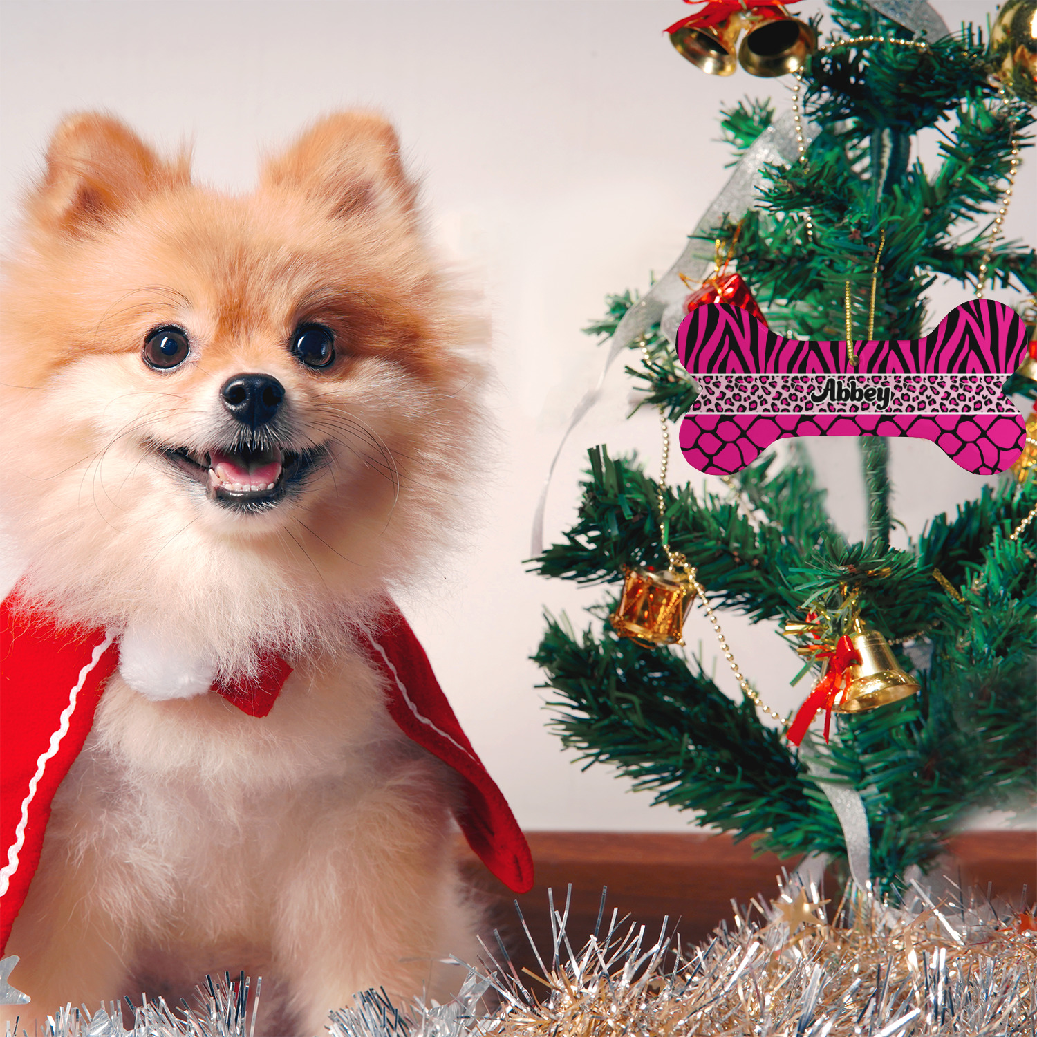 Pets are part of the family, too! Show off your puppy love by creating a personalized ornament for them this Christmas! You'll have their tails wagging hanging up their own custom dog bone ornament! Our customizable ornaments are more than just decorations for the holidays. Use the dog ornament as a nameplate, unique photo frame, or more! Start personalizing your dog ornament today with our online design studio. We offer customizable designs, or you can upload a photo for us to print!