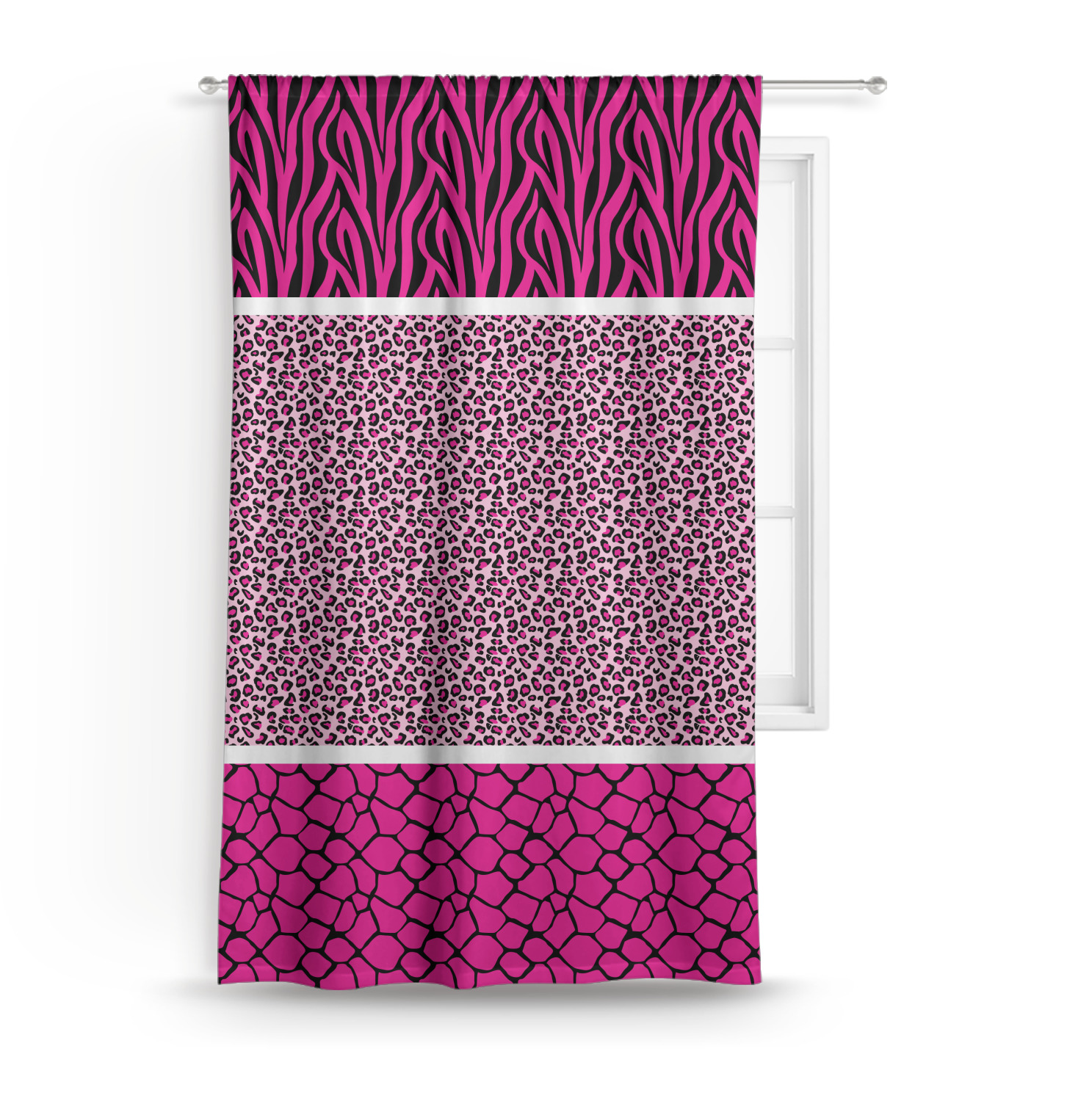 This over top triple animal prints (zebra, leopard & giraffe) is definitely for the person who LOVES animal prints. The design has zebra print on top, leopard print in the middle and giraffe print on the bottom. We chose to feature this design in black, hot pink and baby pink, however, the design is completely re-color-able, so you are able to select any color combinations you desire. Also the order of the pattern is also customizable.