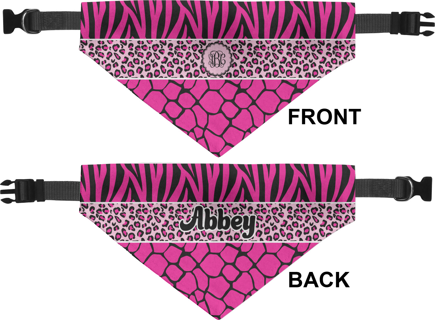 This over top triple animal prints (zebra, leopard & giraffe) is definitely for the person who LOVES animal prints. The design has zebra print on top, leopard print in the middle and giraffe print on the bottom. We chose to feature this design in black, hot pink and baby pink, however, the design is completely re-color-able, so you are able to select any color combinations you desire. Also the order of the pattern is also customizable.