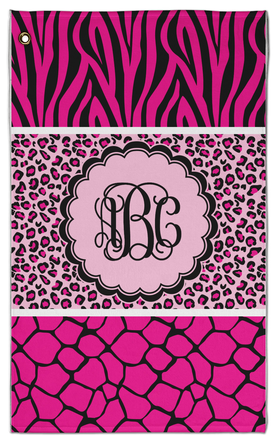 This over top triple animal prints (zebra, leopard & giraffe) is definitely for the person who LOVES animal prints. The design has zebra print on top, leopard print in the middle and giraffe print on the bottom. We chose to feature this design in black, hot pink and baby pink, however, the design is completely re-color-able, so you are able to select any color combinations you desire. Also the order of the pattern is also customizable.