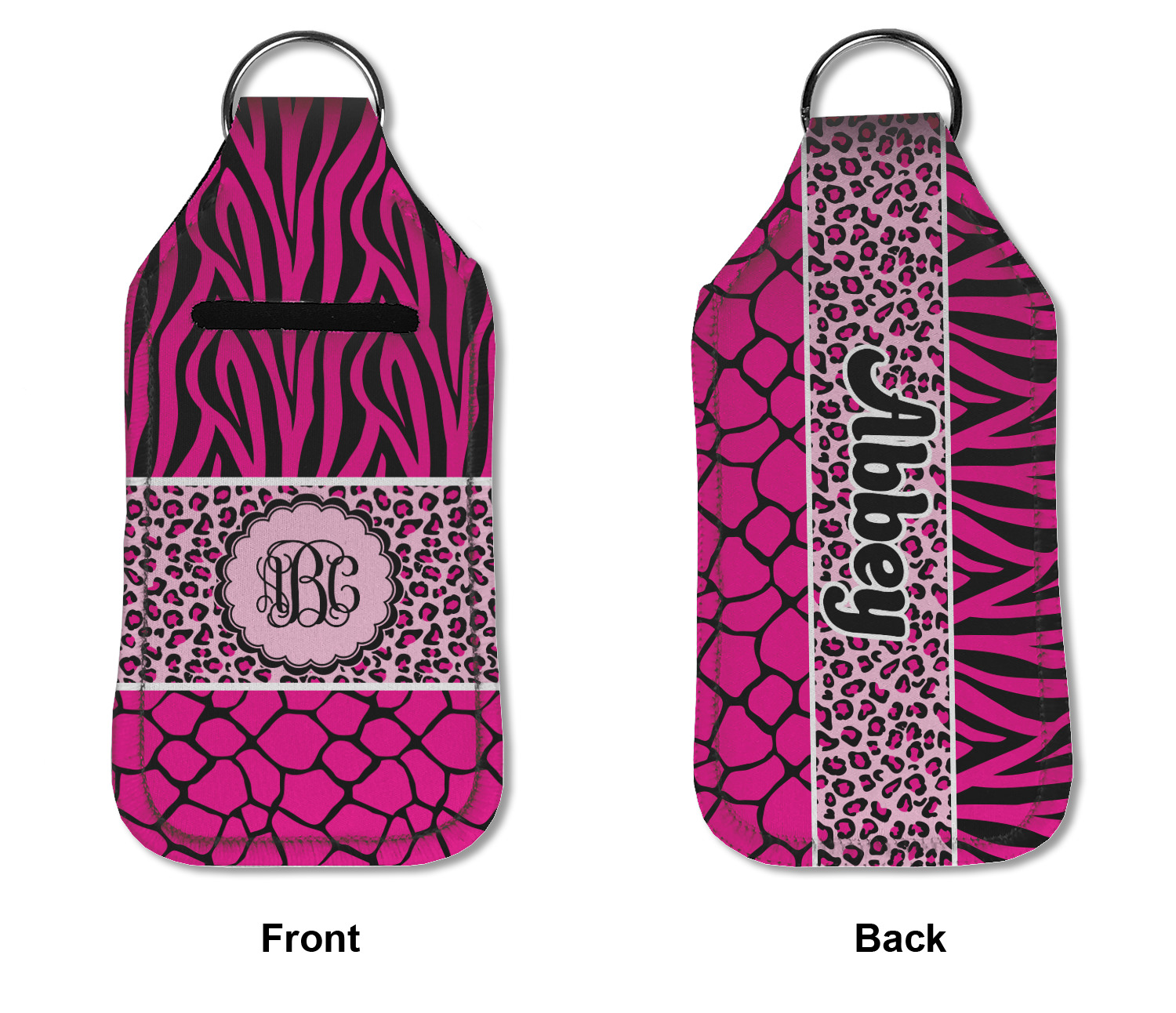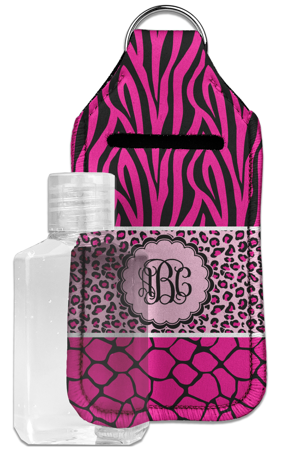Each hand sanitizer holder comes with its own empty travel-sized, refillable hand sanitizer sure to fit snug in your customized sanitizer case! Our hand sanitizer cases are a durable, yet soft neoprene material sure to last any daily activities or travel agenda. Customize and personalize a hand sanitizer bottle holder with one of our two sizes - small (4.25" x 2.25") or large (5.5" x 2.5"). Each travel sanitizer holder comes with a keyring for attachment on bags, keys, or more!