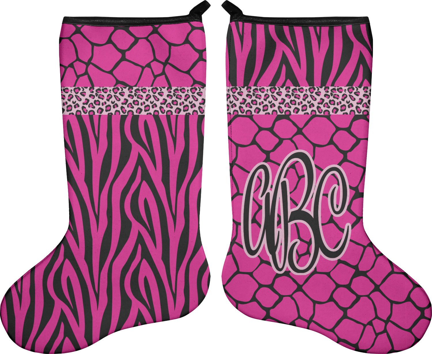 This over top triple animal prints (zebra, leopard & giraffe) is definitely for the person who LOVES animal prints. The design has zebra print on top, leopard print in the middle and giraffe print on the bottom. We chose to feature this design in black, hot pink and baby pink, however, the design is completely re-color-able, so you are able to select any color combinations you desire. Also the order of the pattern is also customizable.