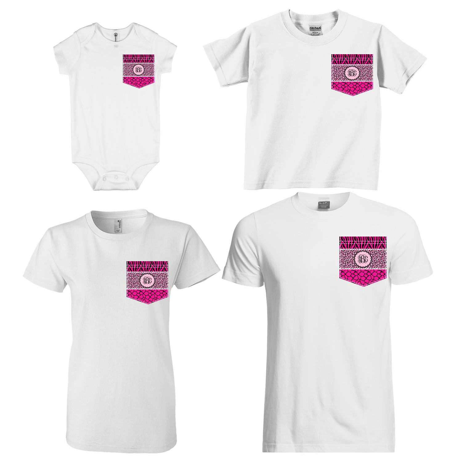 The faux pockets are available in 4 different sizes - for baby, kids, youth/women & men; the whole family can have the same pocket design, but sized just for them! The pockets are printed using our direct-to-film technology to the exact shape & size. We have faux stitching around the pocket, with double stitching on the top of the pocket to give it the authentic pocket look!