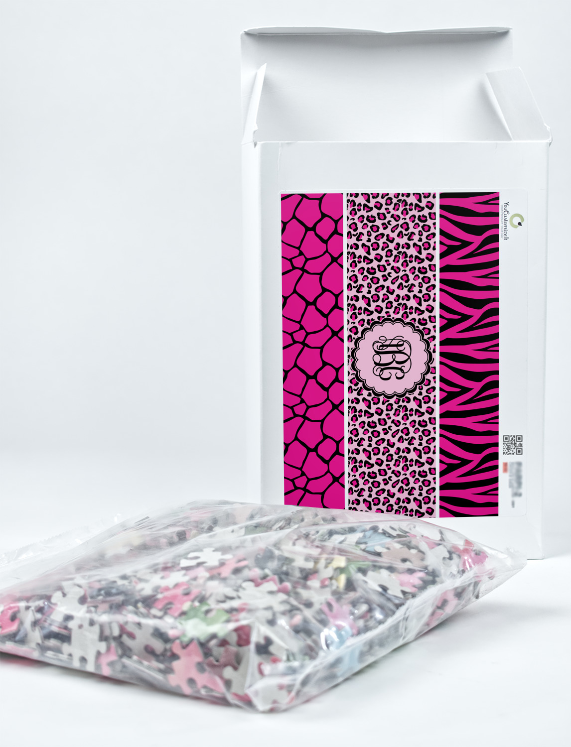 You can also upload your logo or art that you or your kids drew. To create more challenging jigsaw puzzles, you can create a pattern from with your logo or artwork. You can also add other elements such as text or personalization.