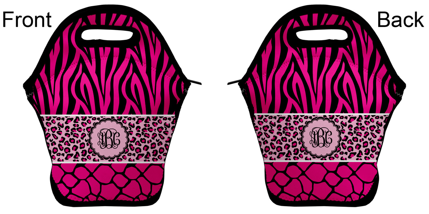 Our personalized lunch bags are made from a strong neoprene, and secure with a zipper closure that lines the top of the bag.The edges of the neoprene are sewn together with a heavy duty stitch, adding to the durability of the bag. The is accompanied by a reinforced handle at its top, for the easy transport of your lunch. We display your personalization across both the front and back of this neoprene lunch bag, while the remaining sides are a sleek black in color. Each bag measures at 13.5 inches tall, and 11.5 inches wide.