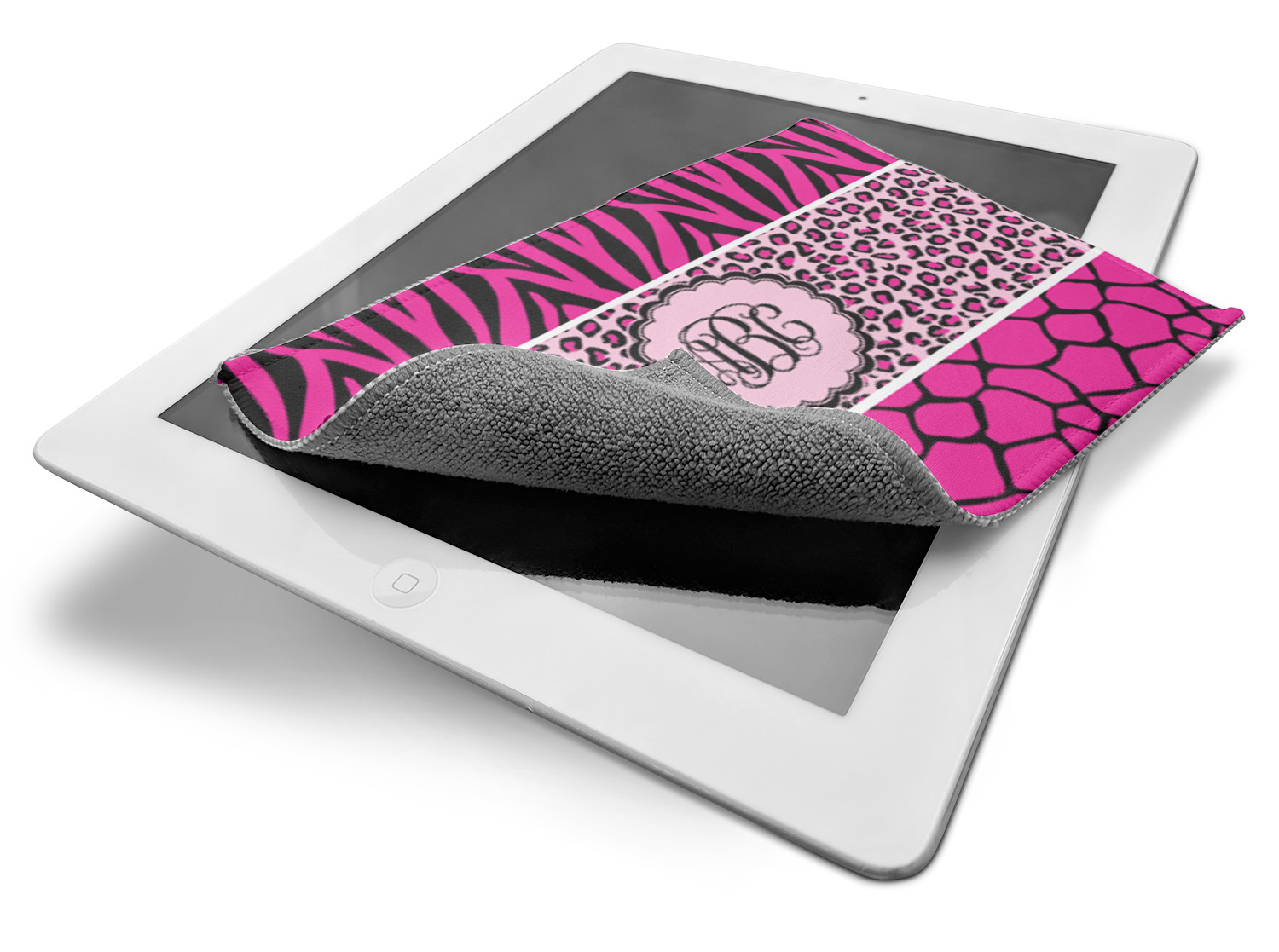 The back of this cleaning cloth is made from a gentle, grey microfiber material, that is masterful at removing smudges, grease, and fingerprints from lenses or electronic screens. The front side of the screen cleaner displays your personalized design in vibrant color. A beautiful stitch lines the edges and secures the microfiber to the polyester top. We provide you with the option of customizing this screen horizontally or vertically, depending on your preferences.