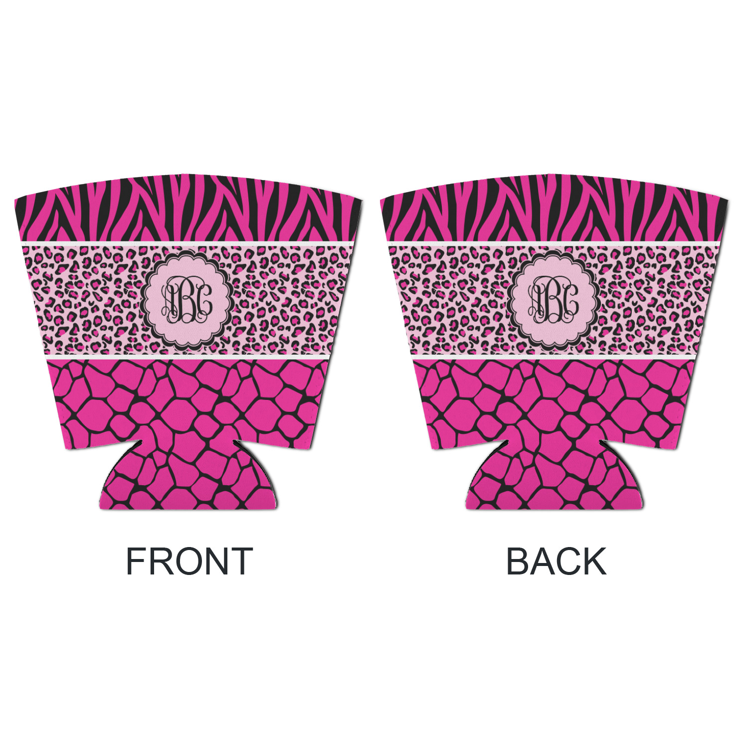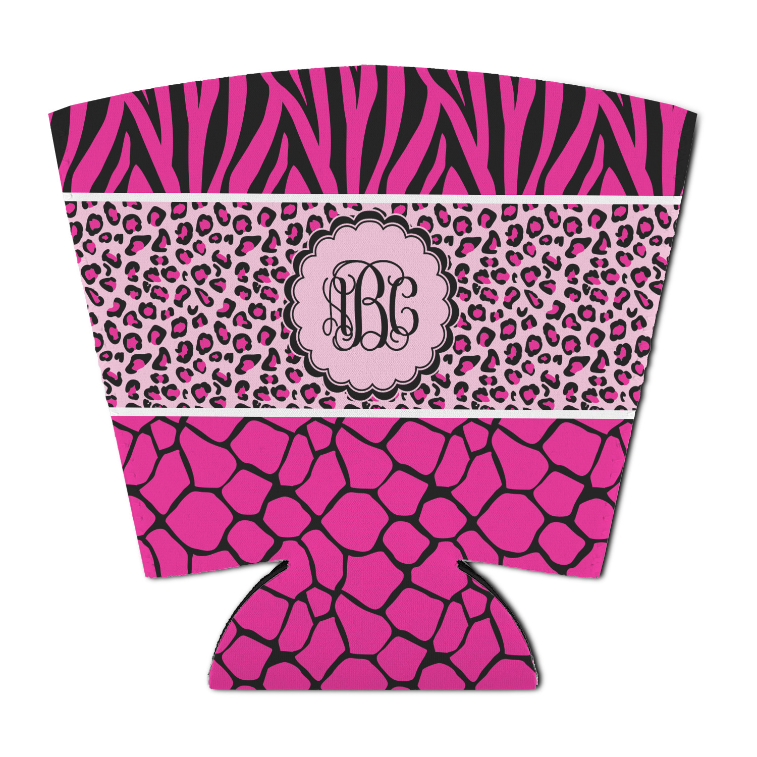 This over top triple animal prints (zebra, leopard & giraffe) is definitely for the person who LOVES animal prints. The design has zebra print on top, leopard print in the middle and giraffe print on the bottom. We chose to feature this design in black, hot pink and baby pink, however, the design is completely re-color-able, so you are able to select any color combinations you desire. Also the order of the pattern is also customizable.