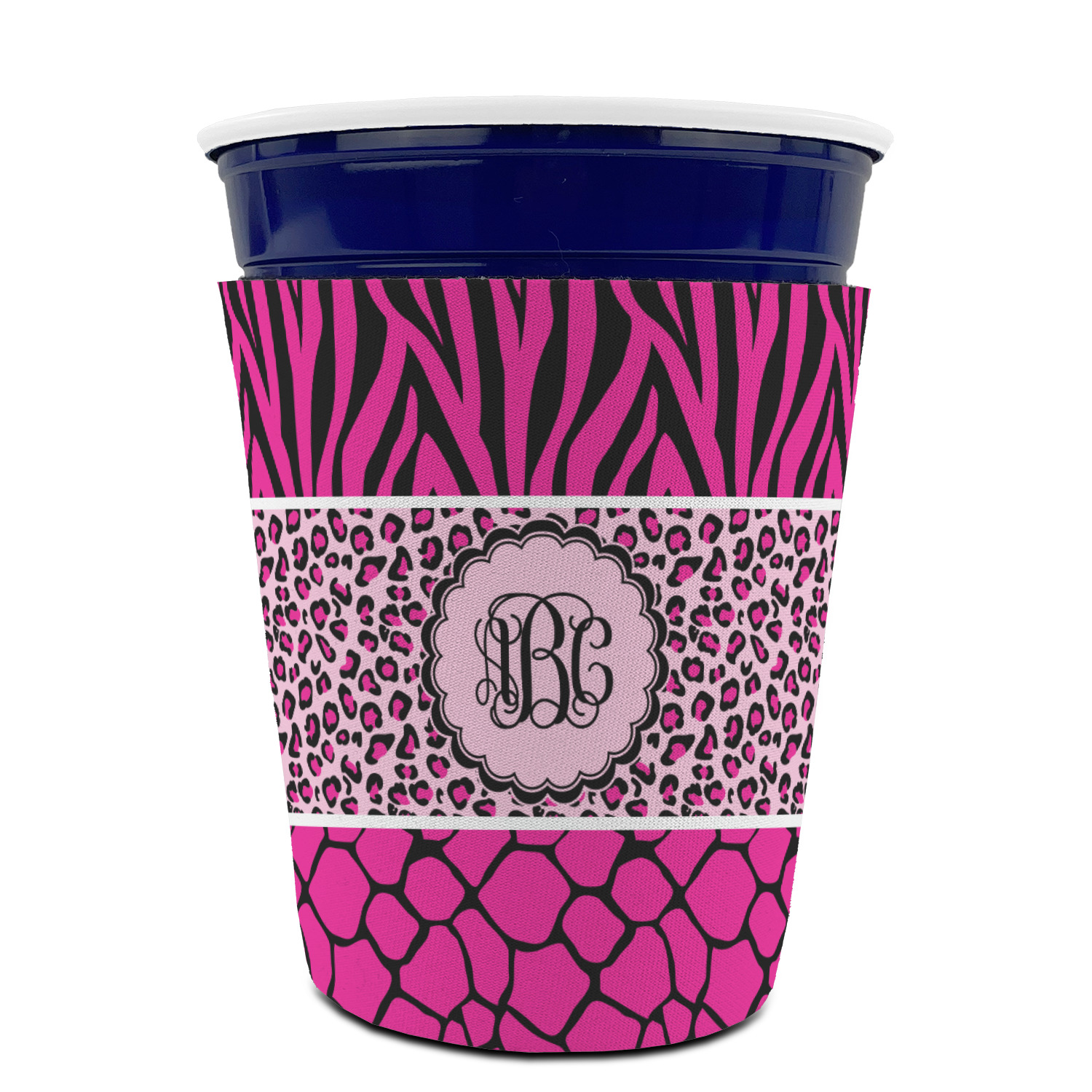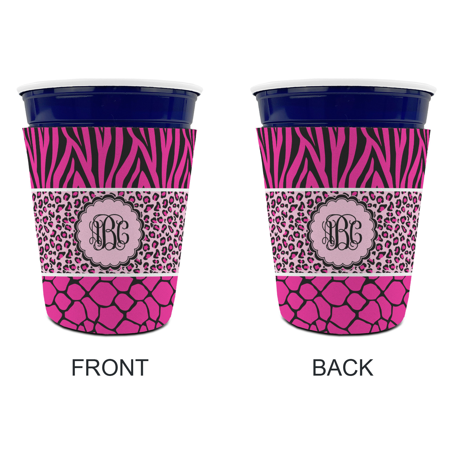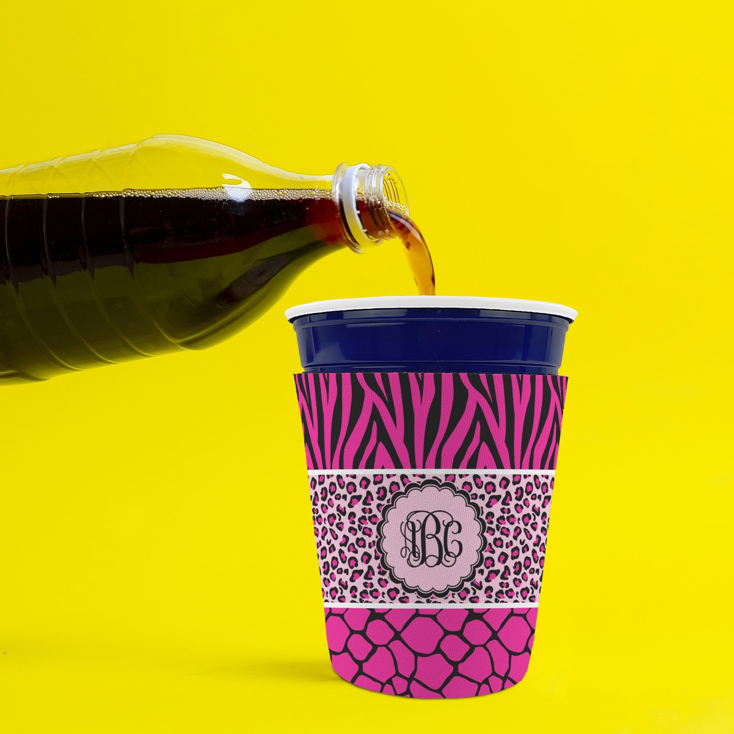 Made from neoprene with a polyester outer fabric and sewn seams, these premium quality party cup sleeves are very durable and will hold up to heavy use. They are available in 2 styles - with a bottom or just a sleeve to go around the outside of the tapered cup. The sleeve covers are about 4" tall and cover about 90% of the classic 16 oz. Solo cup.