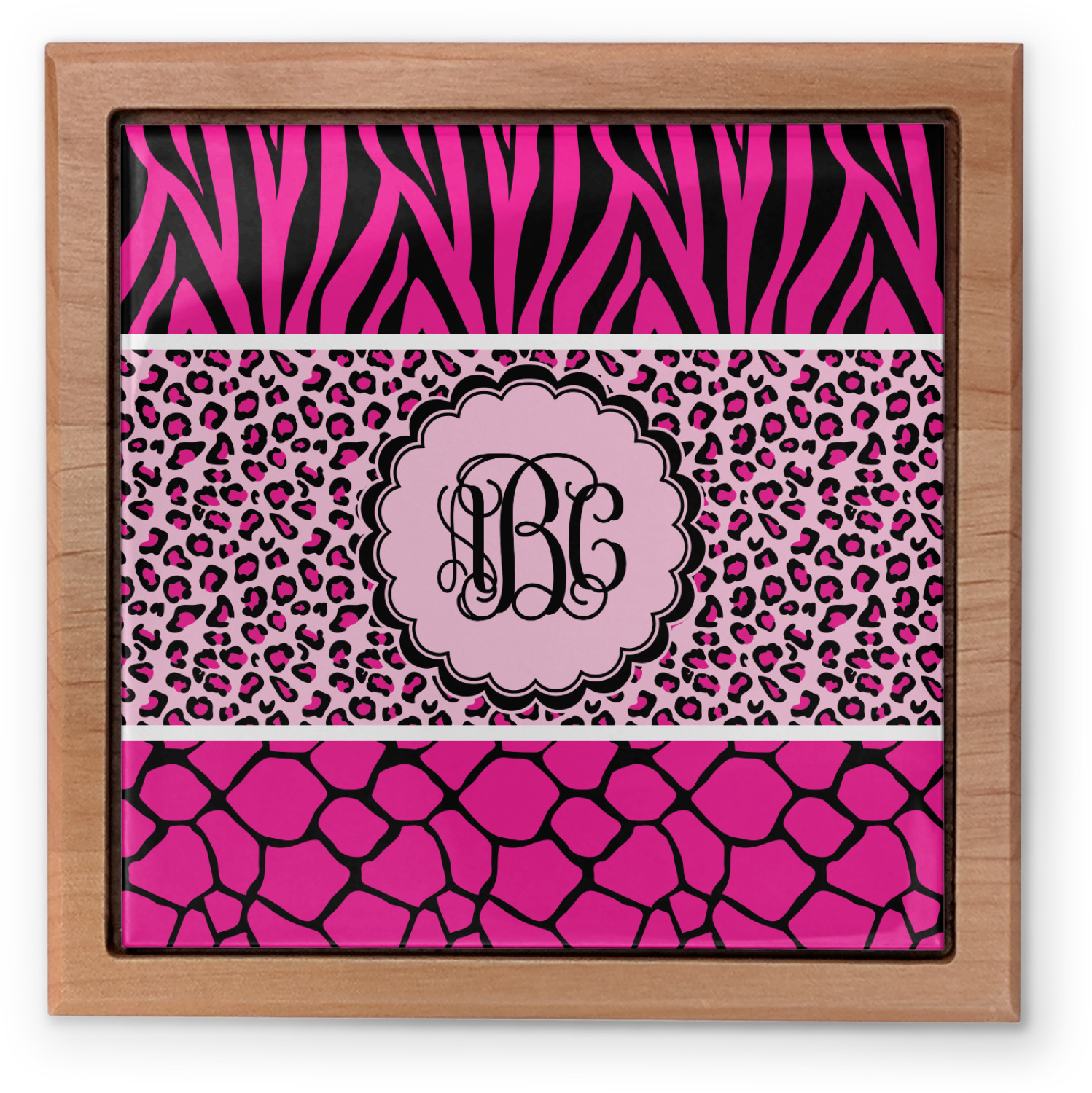 This over top triple animal prints (zebra, leopard & giraffe) is definitely for the person who LOVES animal prints. The design has zebra print on top, leopard print in the middle and giraffe print on the bottom. We chose to feature this design in black, hot pink and baby pink, however, the design is completely re-color-able, so you are able to select any color combinations you desire. Also the order of the pattern is also customizable.
