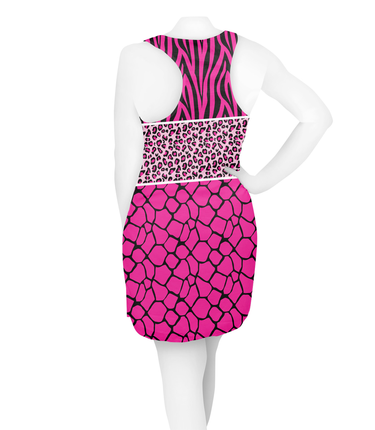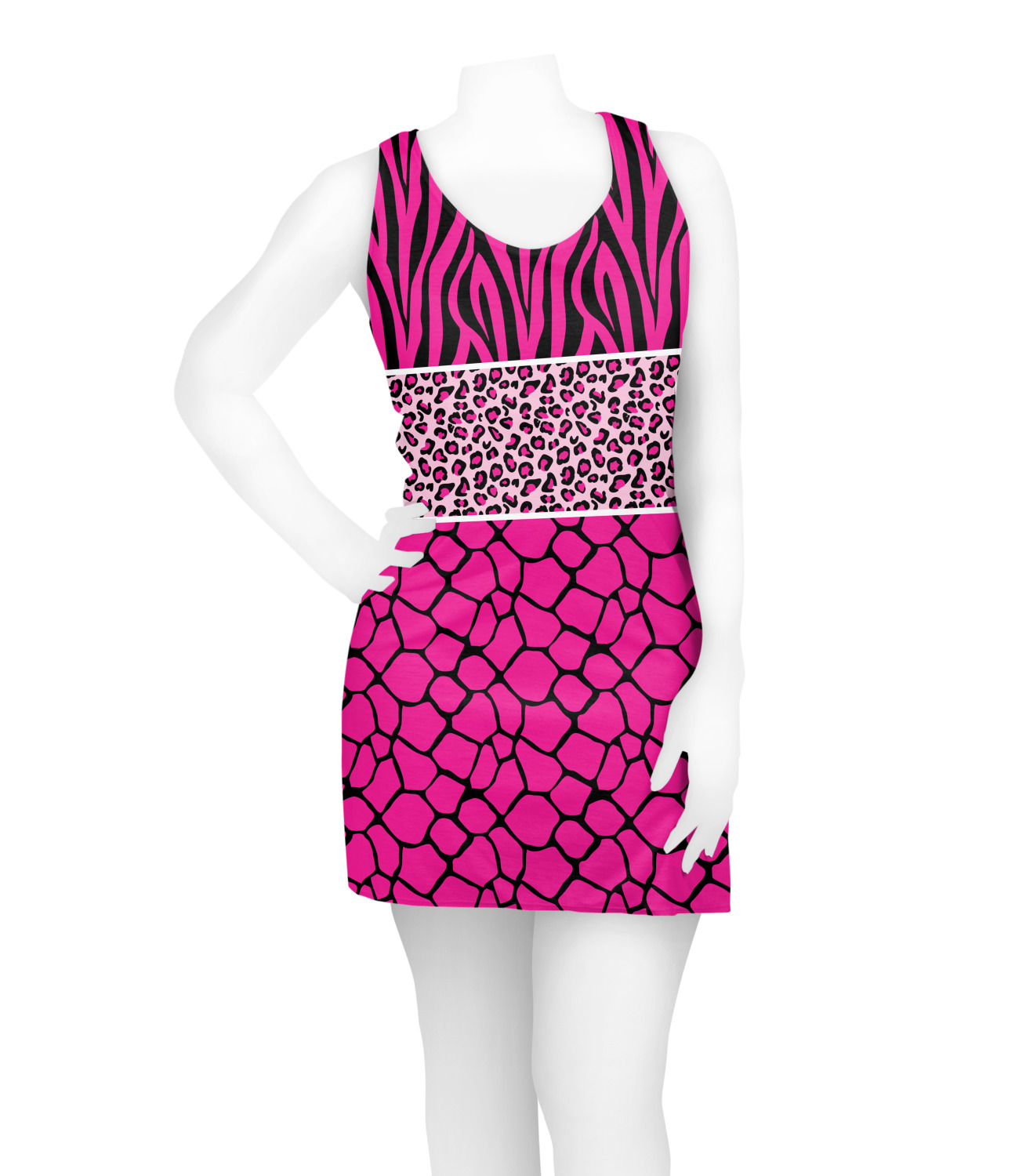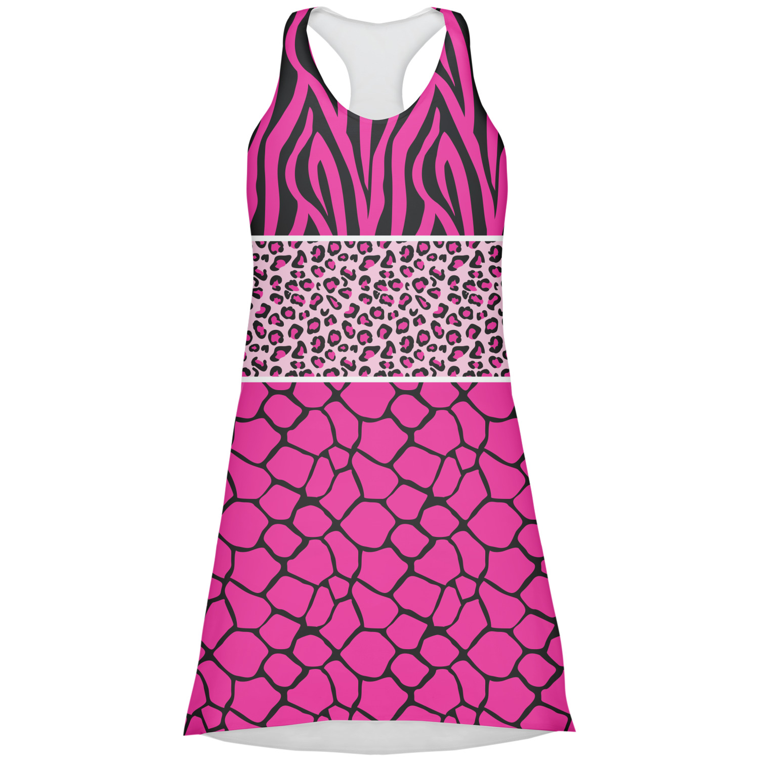 This over top triple animal prints (zebra, leopard & giraffe) is definitely for the person who LOVES animal prints. The design has zebra print on top, leopard print in the middle and giraffe print on the bottom. We chose to feature this design in black, hot pink and baby pink, however, the design is completely re-color-able, so you are able to select any color combinations you desire. Also the order of the pattern is also customizable.
