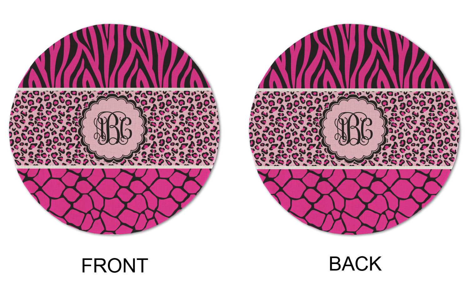 This over top triple animal prints (zebra, leopard & giraffe) is definitely for the person who LOVES animal prints. The design has zebra print on top, leopard print in the middle and giraffe print on the bottom. We chose to feature this design in black, hot pink and baby pink, however, the design is completely re-color-able, so you are able to select any color combinations you desire. Also the order of the pattern is also customizable.