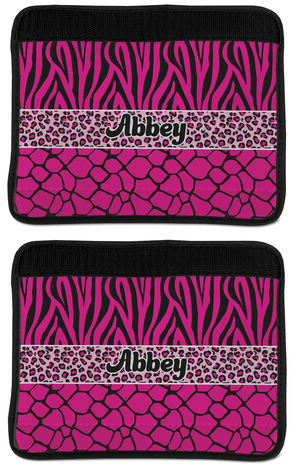 Made from neoprene, our seat belt strap covers wrap around the belt itself and have a Velcro tab for easy attachment and closure. The belt's edges are trimmed with a black polyester for a secure finish. Each cover is 9.5 by 7 inches when open and 9.5 by 2.5 inches when closed. We print your personalized design on the face of the seat belt pad.