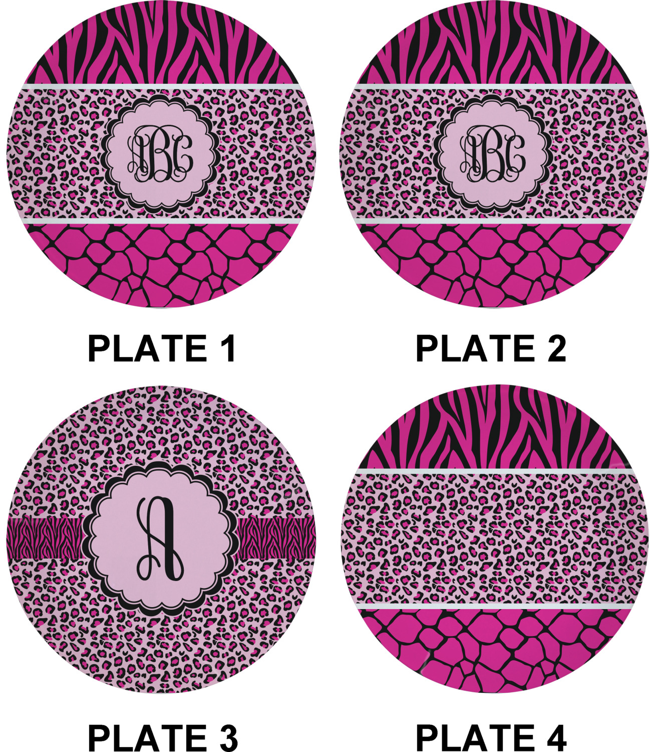 This over top triple animal prints (zebra, leopard & giraffe) is definitely for the person who LOVES animal prints. The design has zebra print on top, leopard print in the middle and giraffe print on the bottom. We chose to feature this design in black, hot pink and baby pink, however, the design is completely re-color-able, so you are able to select any color combinations you desire. Also the order of the pattern is also customizable.