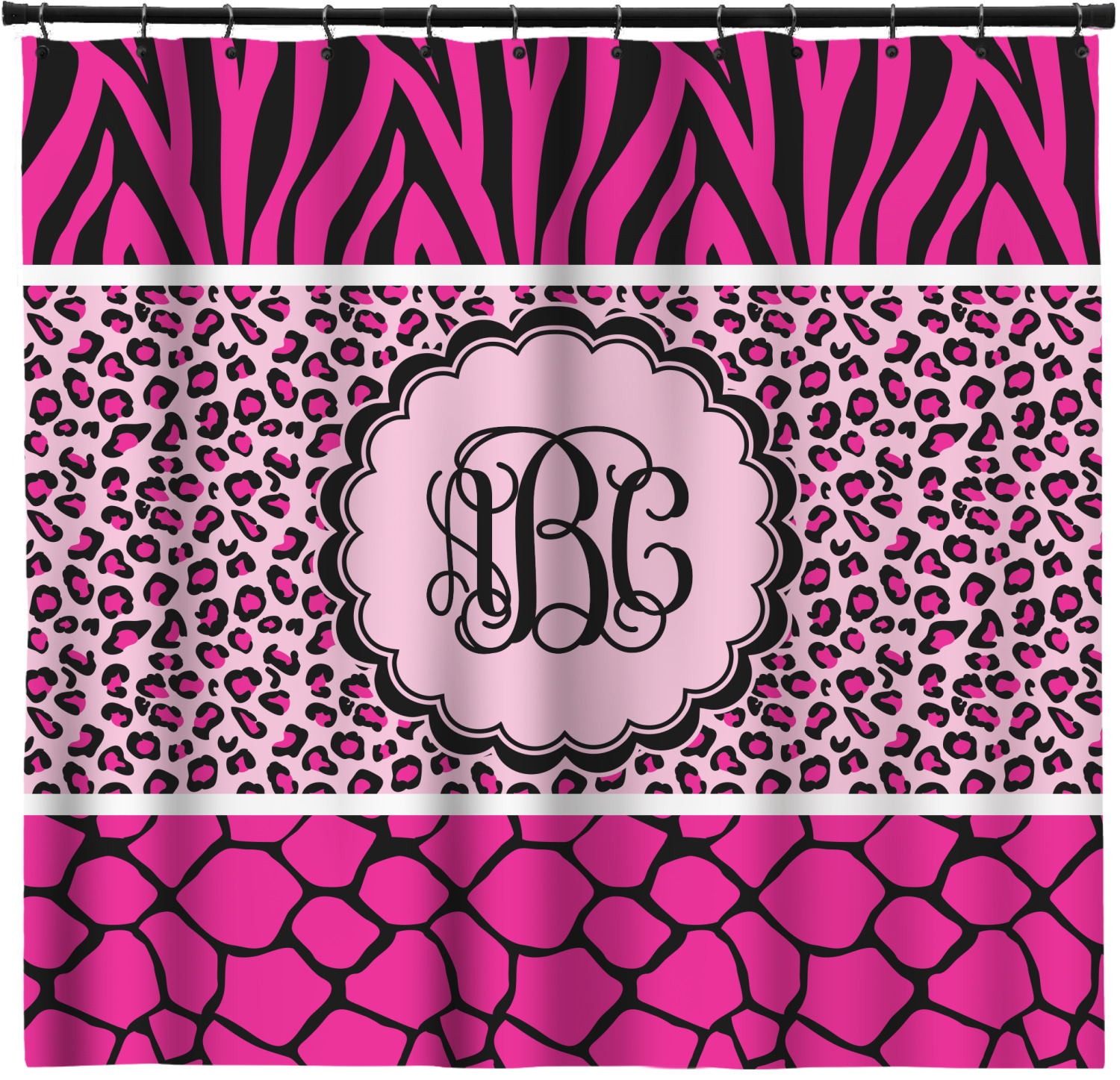 This over top triple animal prints (zebra, leopard & giraffe) is definitely for the person who LOVES animal prints. The design has zebra print on top, leopard print in the middle and giraffe print on the bottom. We chose to feature this design in black, hot pink and baby pink, however, the design is completely re-color-able, so you are able to select any color combinations you desire. Also the order of the pattern is also customizable.