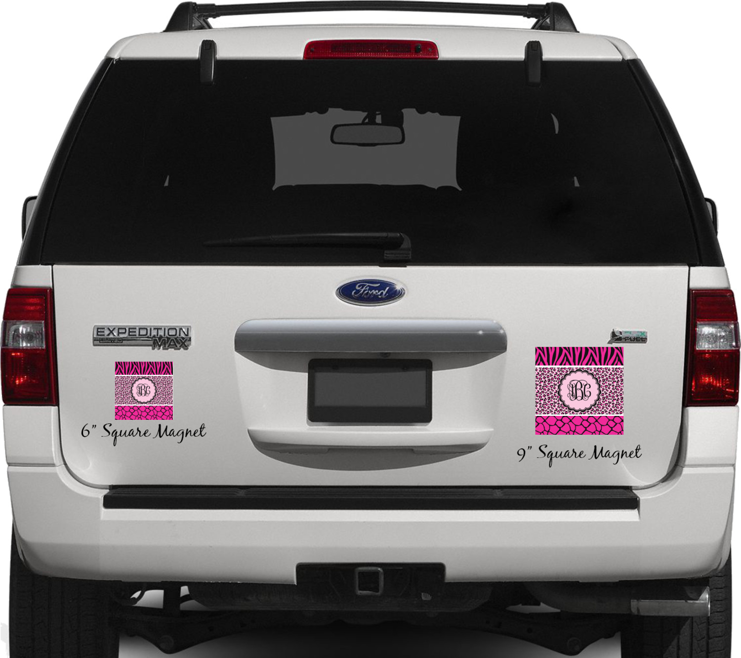 Your personalized car magnets are available for purchase in two shapes and two sizes. We carry round and square editions; each shape can either be 6 by 6 inches, or 10 by 10 inches, depending on your needs. Both versions are 1 millimeter thick, which is considered, within the industry, as the ideal thickness for automobile magnets. The magnetic car decals will adhere to any smooth, metal surface of your cars body, such as the trunk door or a side panel. However, please note that some vehicles are constructed from fiberglass bodies, which prevents the adhesion of anything magnetic. We advise that you test your vehicle before purchasing these magnets.