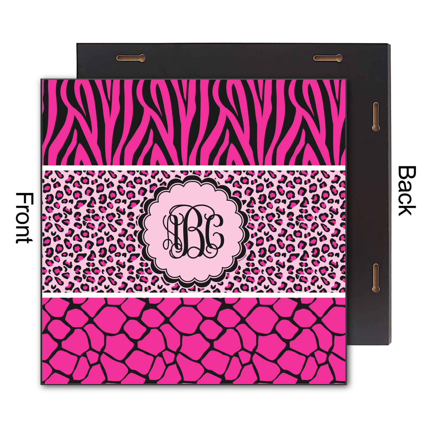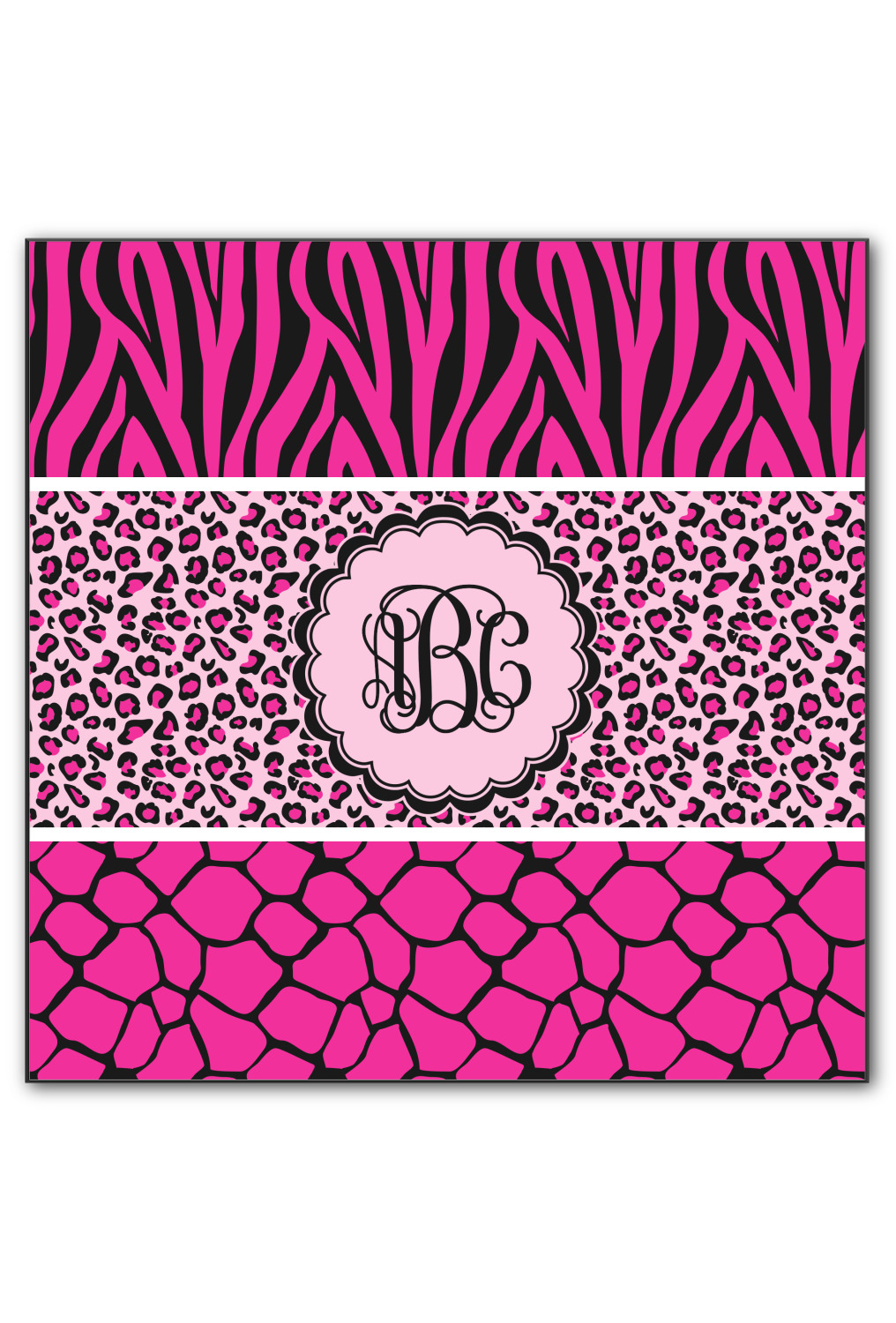 This over top triple animal prints (zebra, leopard & giraffe) is definitely for the person who LOVES animal prints. The design has zebra print on top, leopard print in the middle and giraffe print on the bottom. We chose to feature this design in black, hot pink and baby pink, however, the design is completely re-color-able, so you are able to select any color combinations you desire. Also the order of the pattern is also customizable.