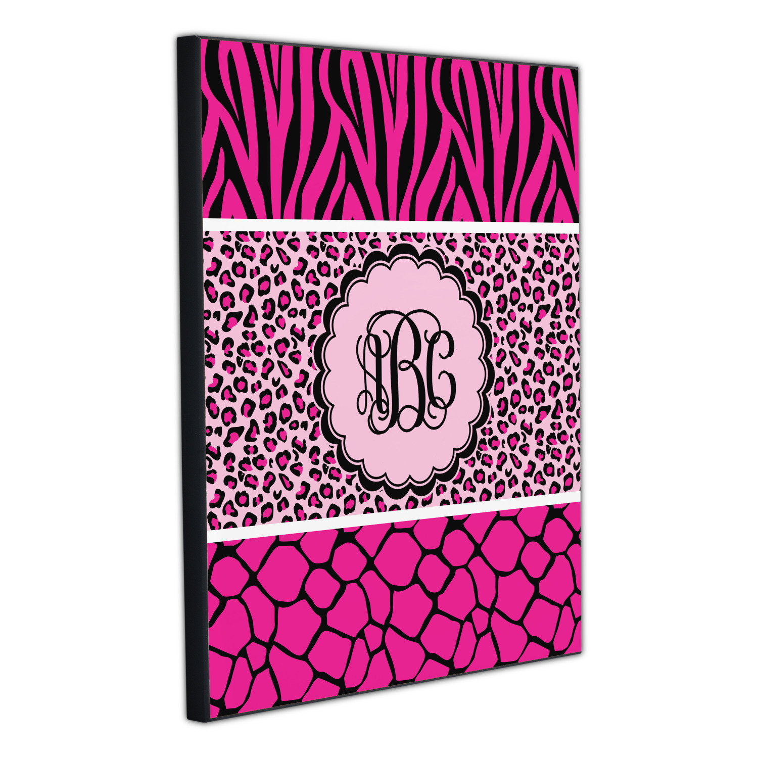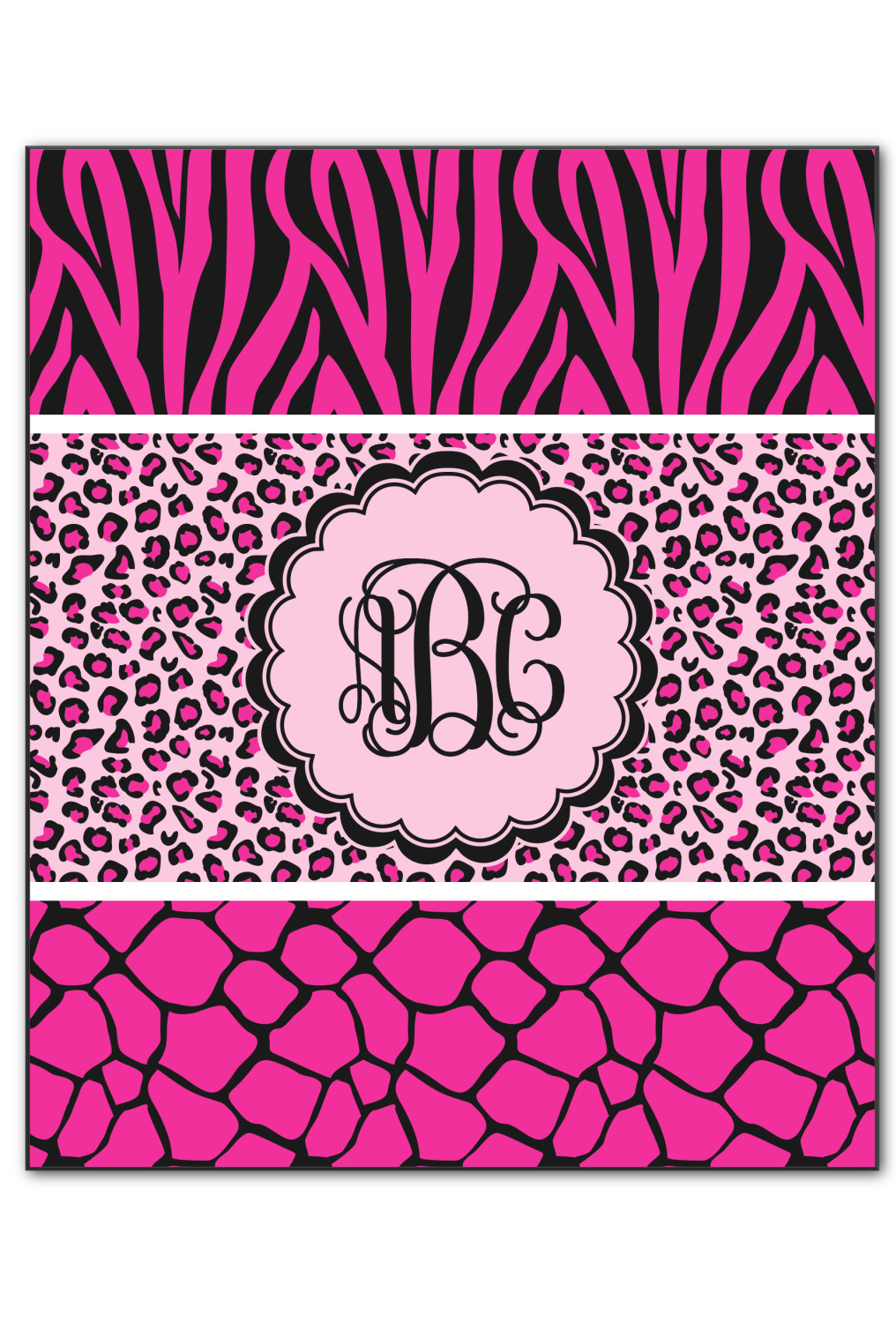 This over top triple animal prints (zebra, leopard & giraffe) is definitely for the person who LOVES animal prints. The design has zebra print on top, leopard print in the middle and giraffe print on the bottom. We chose to feature this design in black, hot pink and baby pink, however, the design is completely re-color-able, so you are able to select any color combinations you desire. Also the order of the pattern is also customizable.