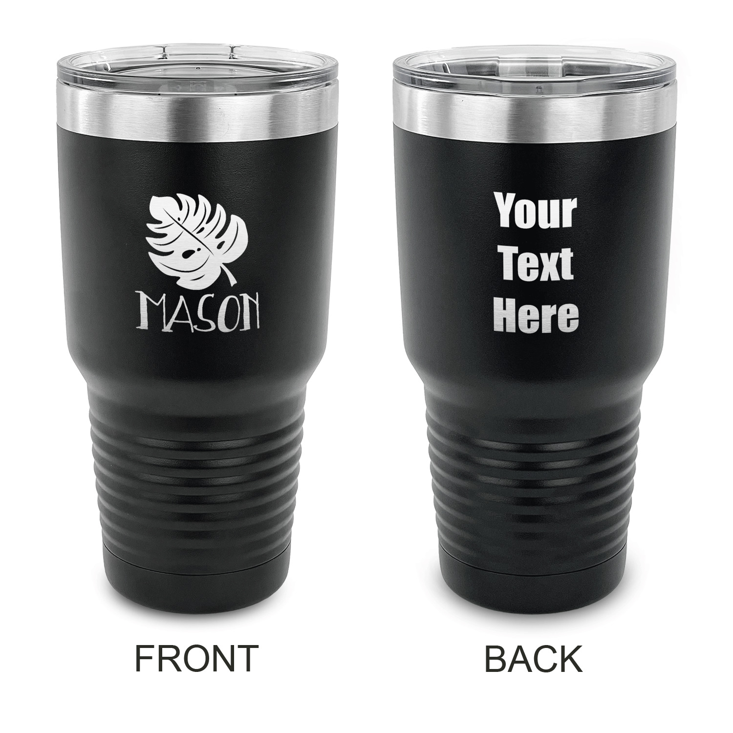 With the 5 colors - Black, Navy, Red, Pink and Coral, you are sure to find a cup to fit your personality. You can chose to engrave on the front or the front and back of the cup. Use our design studio to design your own cup and we laser engrave it for you.