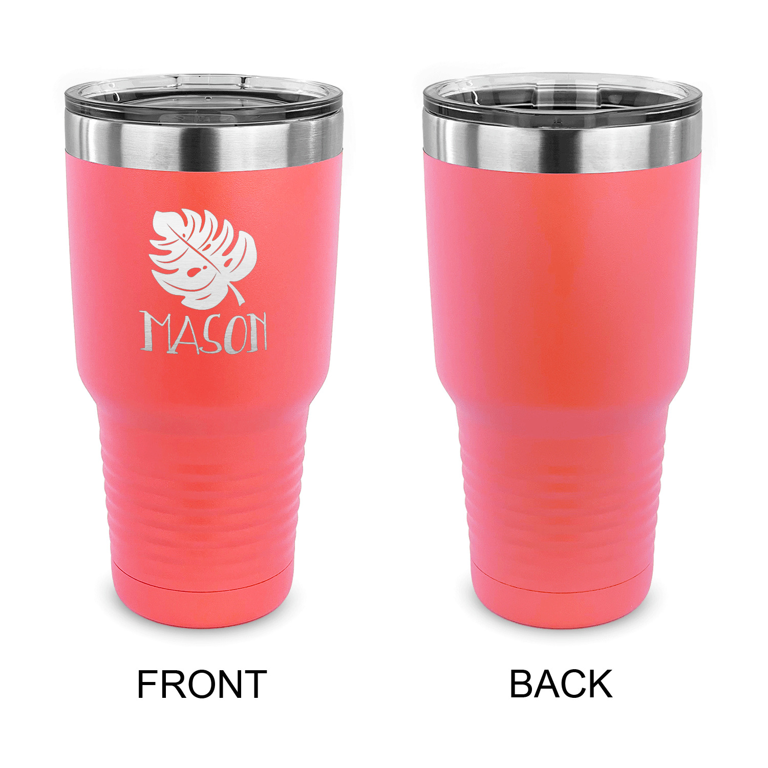 With the 5 colors - Black, Navy, Red, Pink and Coral, you are sure to find a cup to fit your personality. You can chose to engrave on the front or the front and back of the cup. Use our design studio to design your own cup and we laser engrave it for you.