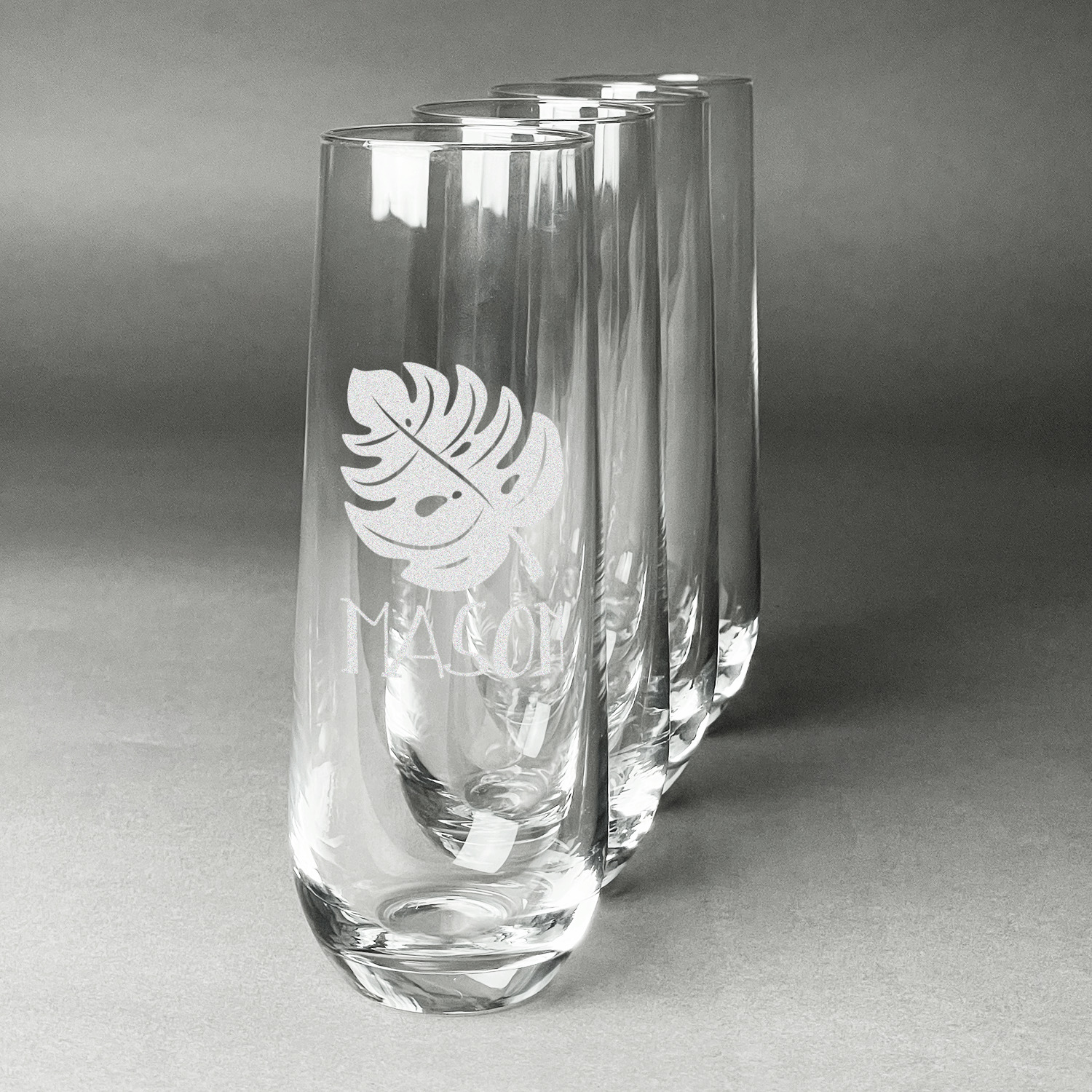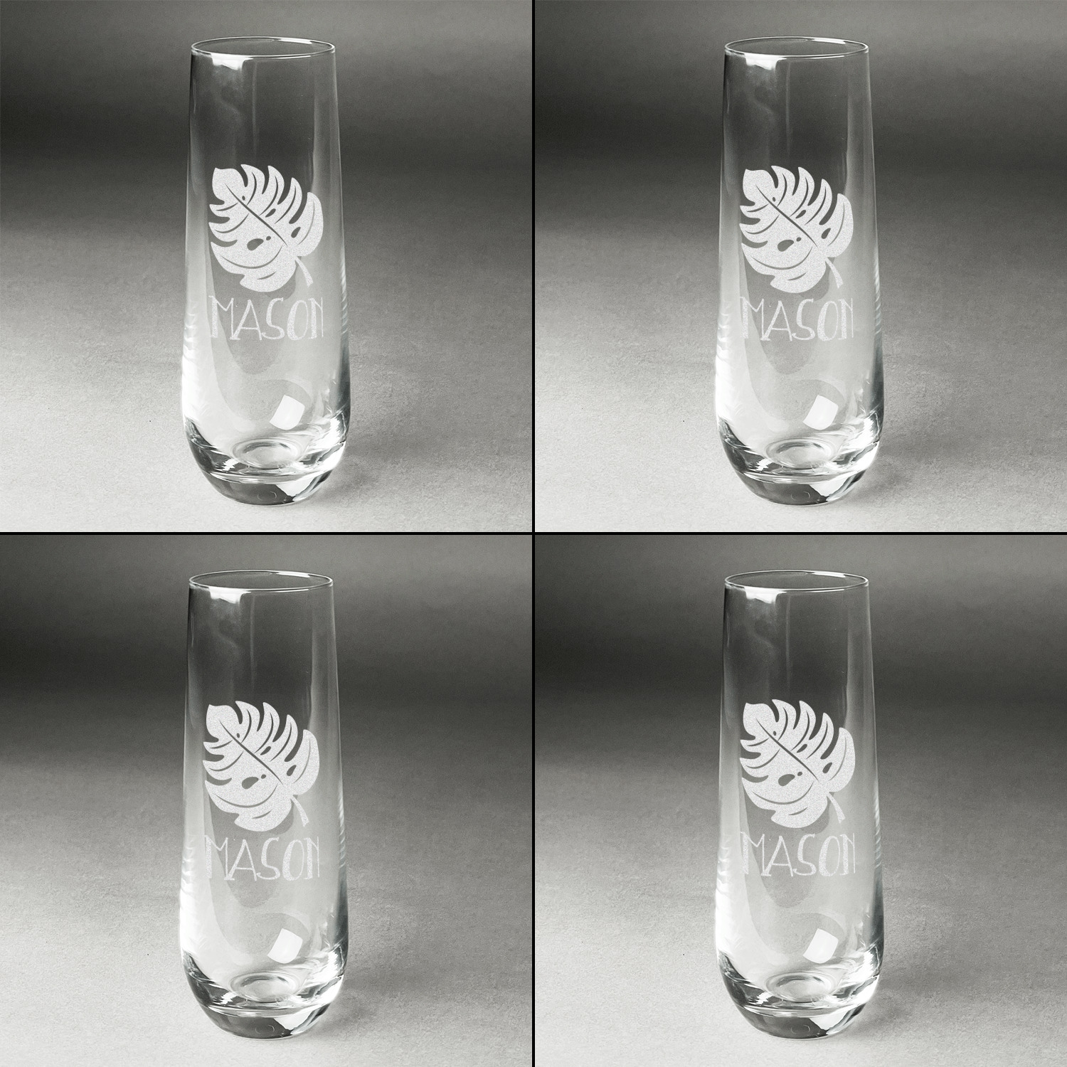 Design your custom stemless champagne flutes and we will then laser engrave your unique design on them for you. Whether they are a special gift for a bride and groom, for your New Years Eve party, or a bachelorette party you are sure to be able to add a custom personalized touch to make them perfect for the occasion.