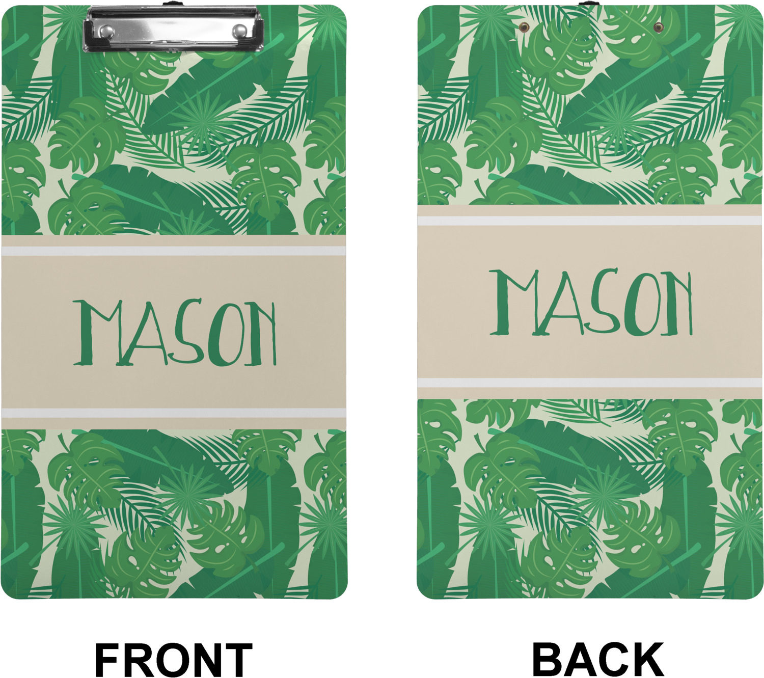 These custom clipboards are made from a strong hardboard and are coated with a glossy finish that accentuates the colors of your design. Alongside a retractable hook at its top, these decorative clipboards also feature sturdy clips to secure several sheets of paper. We sell these clipboards in two separate sizes. Our letter size measures at 12.5" L x 9" W, while our legal clipboard is approximately 15.5" L x 9" W. On both models, your personalization is printed on both sides of this clipboard and can be customized individually.