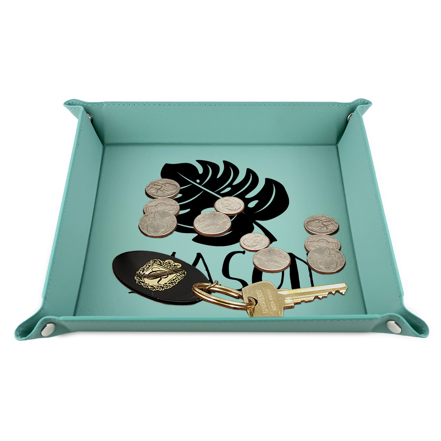The leatherette wraps the hard board base and sides with flexible hinges to fold the sides up. The corners are secured using silver snaps. The 6in x 6 in tray measures approximately 9.5in x 9.5in when laid flat. The 9in x 9in tray measures approximately 13in x 13in when laid flat.