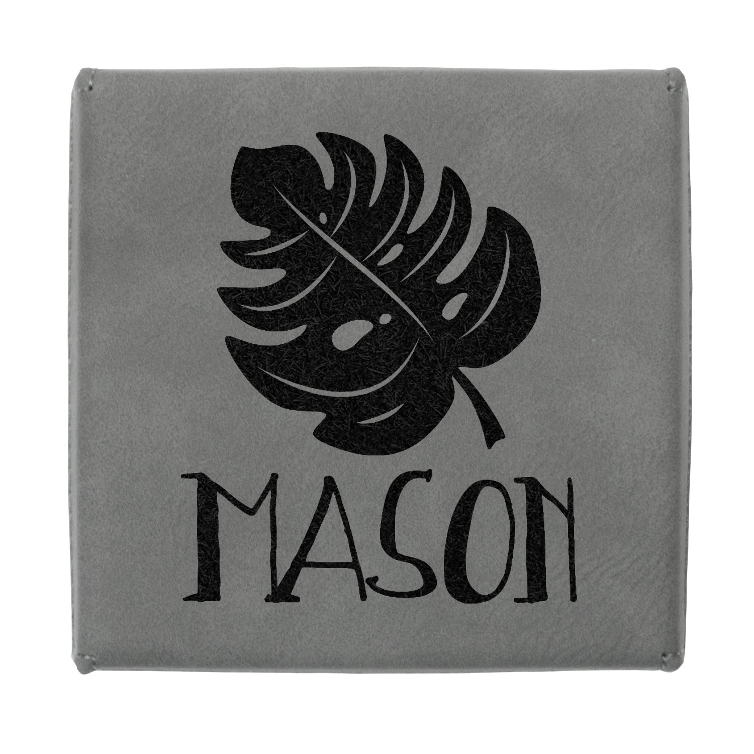 This jewelry gift box measures 3.5 inches long by 3.5 inches wide, and 1 inch deep. The box fits different sized jewelry items such as bracelets, necklaces, watches, earrings, rings and more. Engraved with a laser this high quality paper board and faux leather jewelry gift box is unique and makes any gift stand out.