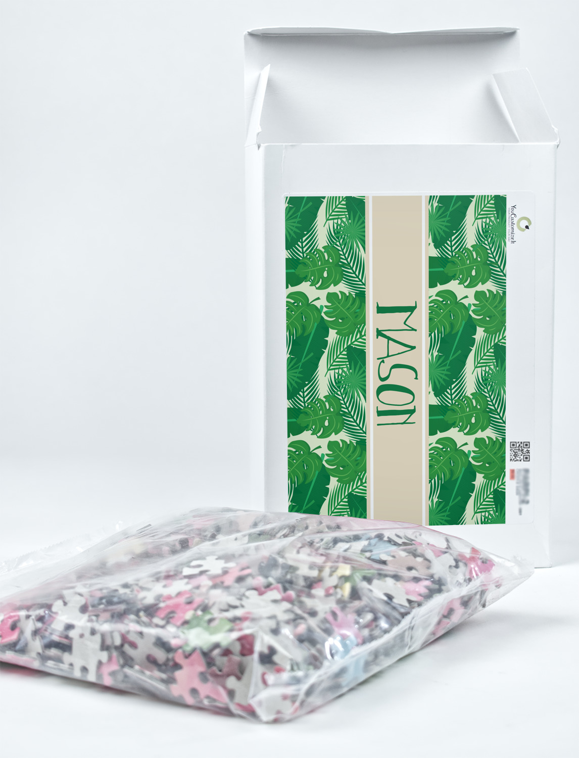 You can also upload your logo or art that you or your kids drew. To create more challenging jigsaw puzzles, you can create a pattern from with your logo or artwork. You can also add other elements such as text or personalization.
