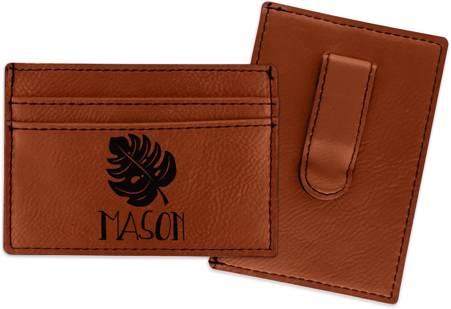 Made from a smooth brown leatherette material, these money clip wallets are the perfect accessory. They measure at approximately 4" x 2.75". On one side there is a money clip where you can slip in your cash. On the other side are three card slots for an ID and credit card or two. The money clip wallet will be laser engraved with your design on the side with the credit card slots. The graphic will come out as a black color.