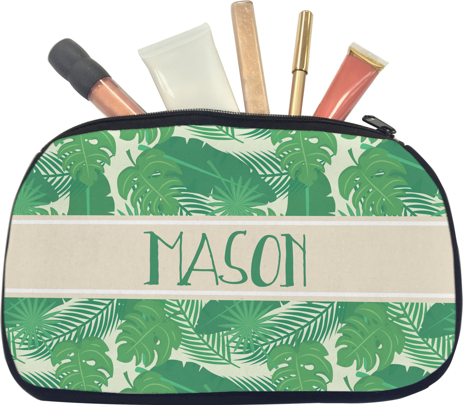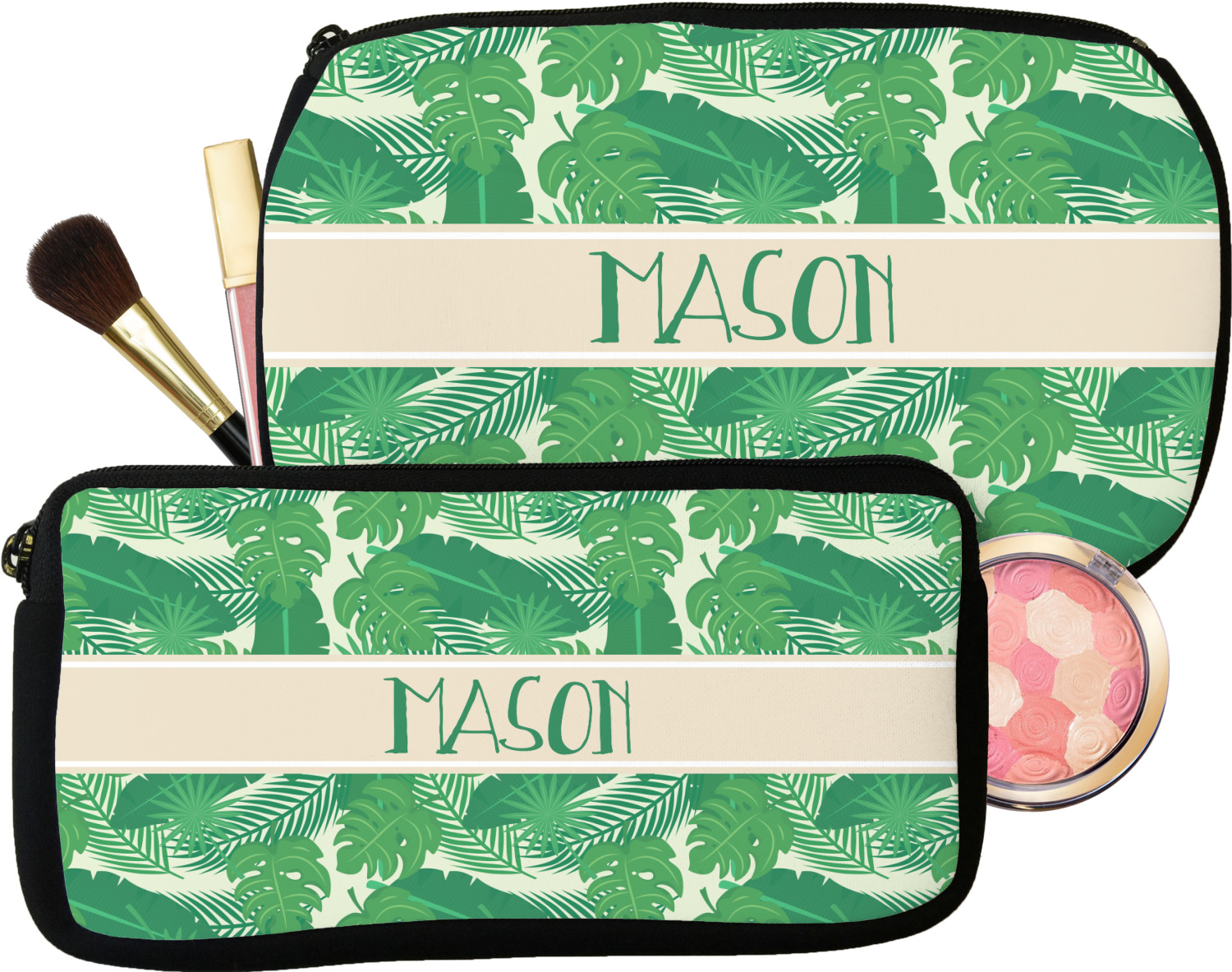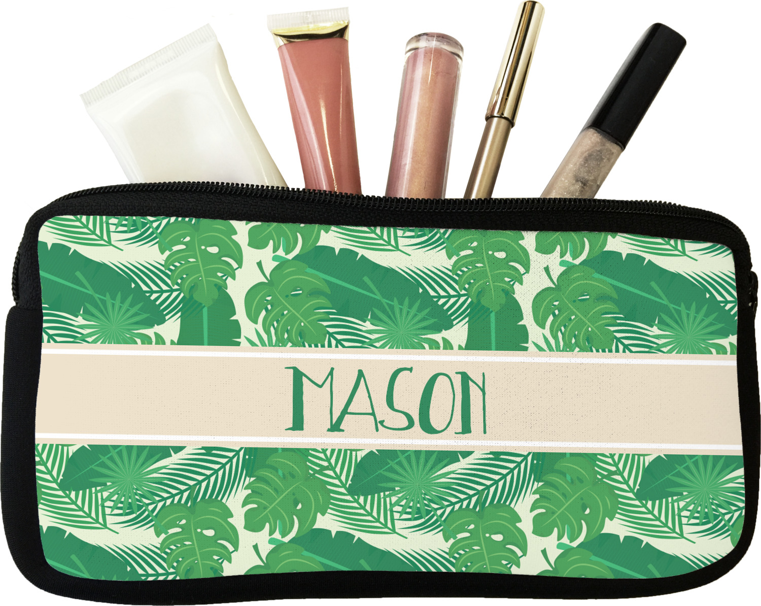 Our personalized makeup bags are available in many different designs, patterns and colors - so you are sure to find one that will love. They are made of neoprene (same material as wet-suits) and thus are water resistant, so spillages in your makeup bag will not end up all over you purse. They are customized on one side and are black on the other side and the zipper is black as well.