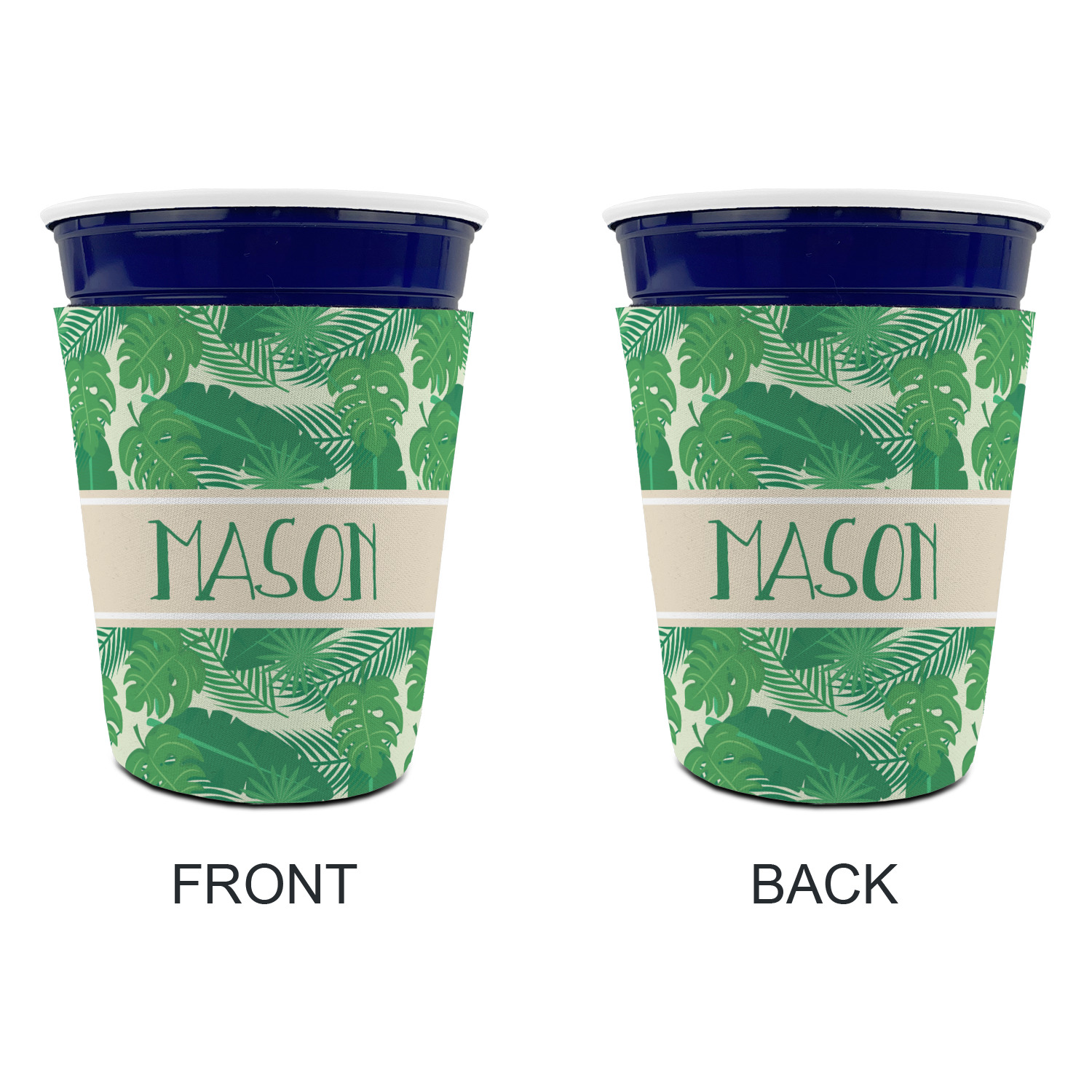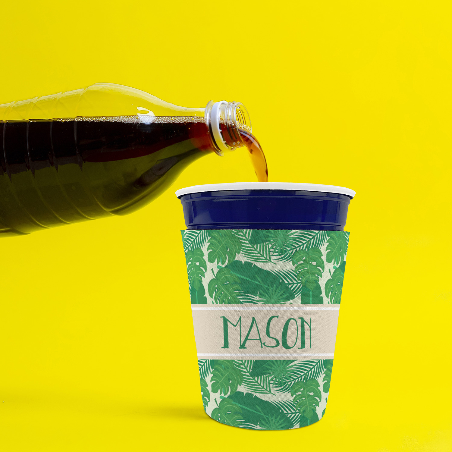 Made from neoprene with a polyester outer fabric and sewn seams, these premium quality party cup sleeves are very durable and will hold up to heavy use. They are available in 2 styles - with a bottom or just a sleeve to go around the outside of the tapered cup. The sleeve covers are about 4" tall and cover about 90% of the classic 16 oz. Solo cup.