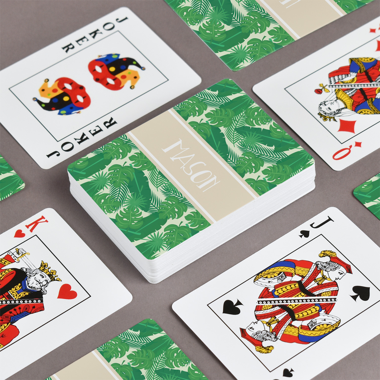 Here at YouCustomizeIt, you can customize your playing cards by uploading your own design, photo, or logo. We have design templates that you can customize by changing the patterns, colors, graphics, personalization styles, etc. - using our free for you to use in our design elements library.
