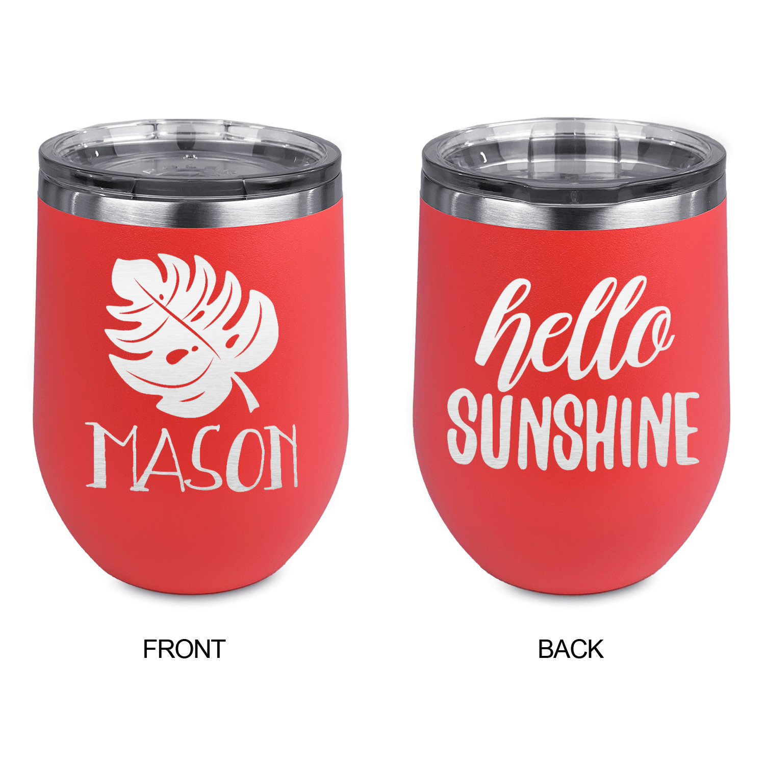 Design your wine tumbler with a cool graphic or quote. Even put your initials or monogram! These cups are laser engraved, which looks extra sharp on the metal tumbler.