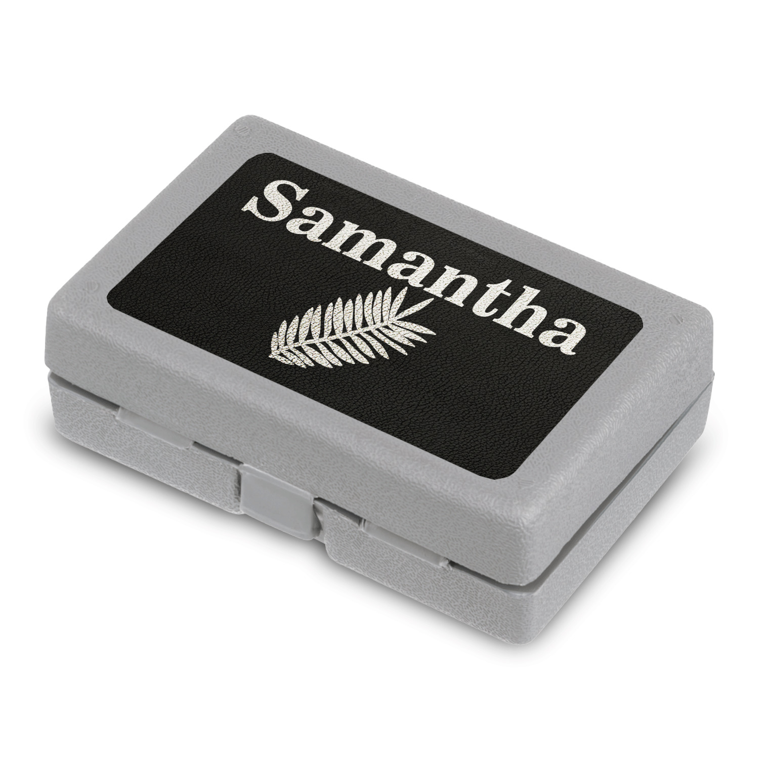 In a tri-fold hard shell case which measures 6" wide, 4" deep and 2" tall, this kit is the perfect size to keep in a desk, garage drawer, or anywhere else in the house. The snap closure keeps it securely closed to ensure the tools do not fall out. With the black faux leather on the outside engraved with your choice of personalization it will be easier to ensure it stays yours by being customized just for you!