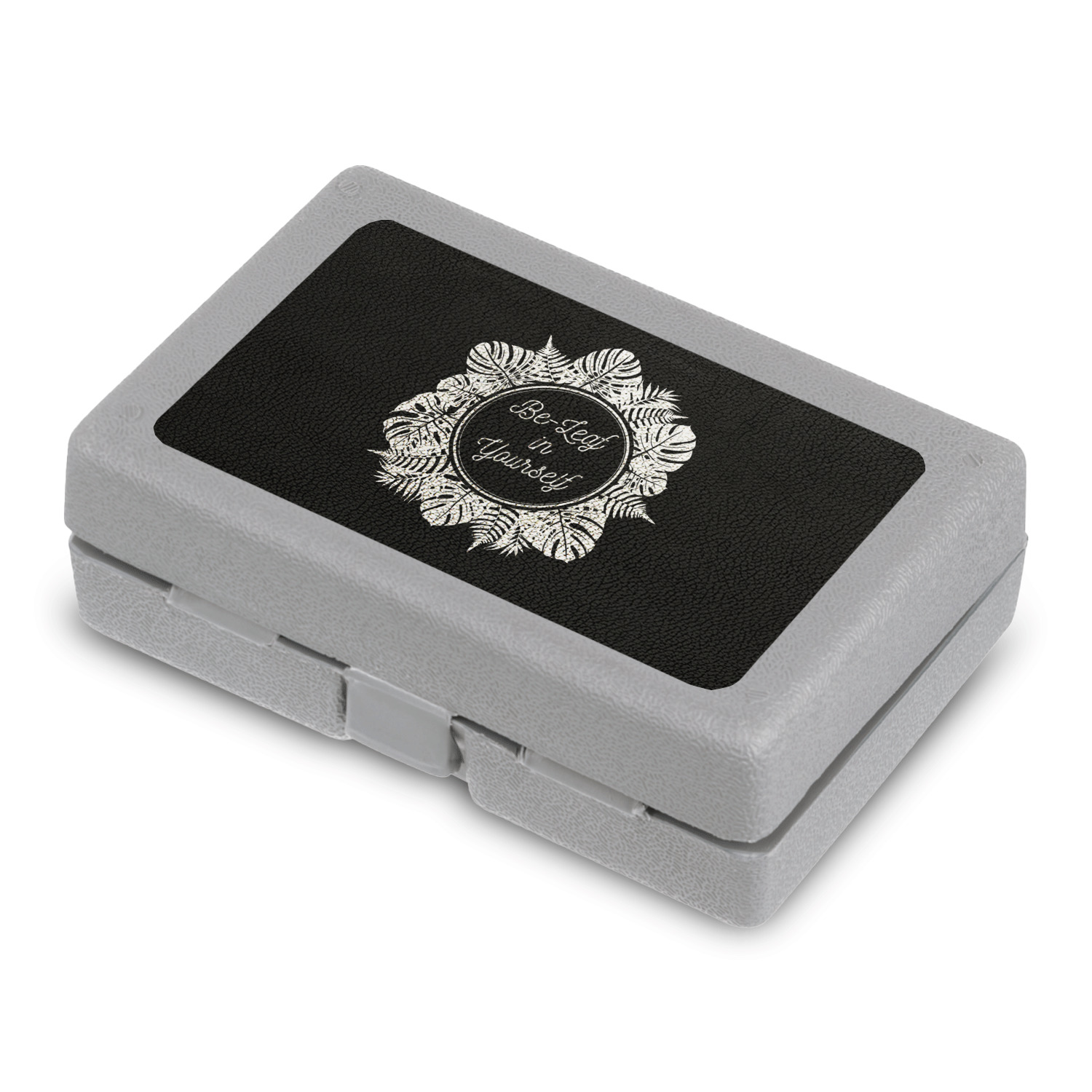 In a tri-fold hard shell case which measures 6" wide, 4" deep and 2" tall, this kit is the perfect size to keep in a desk, garage drawer, or anywhere else in the house. The snap closure keeps it securely closed to ensure the tools do not fall out. With the black faux leather on the outside engraved with your choice of personalization it will be easier to ensure it stays yours by being customized just for you!