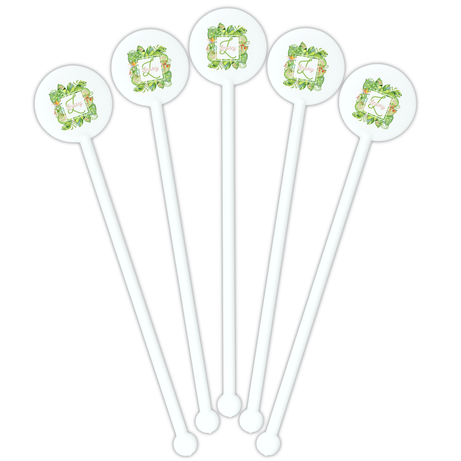This design has a calming light green background. The foreground is filled with pops of dark green, lime, yellow, and a soft red. The tropical leaves really pop out at you as if they were real. The leaves are in a border or frame sort of formation surrounding a name and initial. This is a gorgeous design that looks a little bit different on each product it is on.