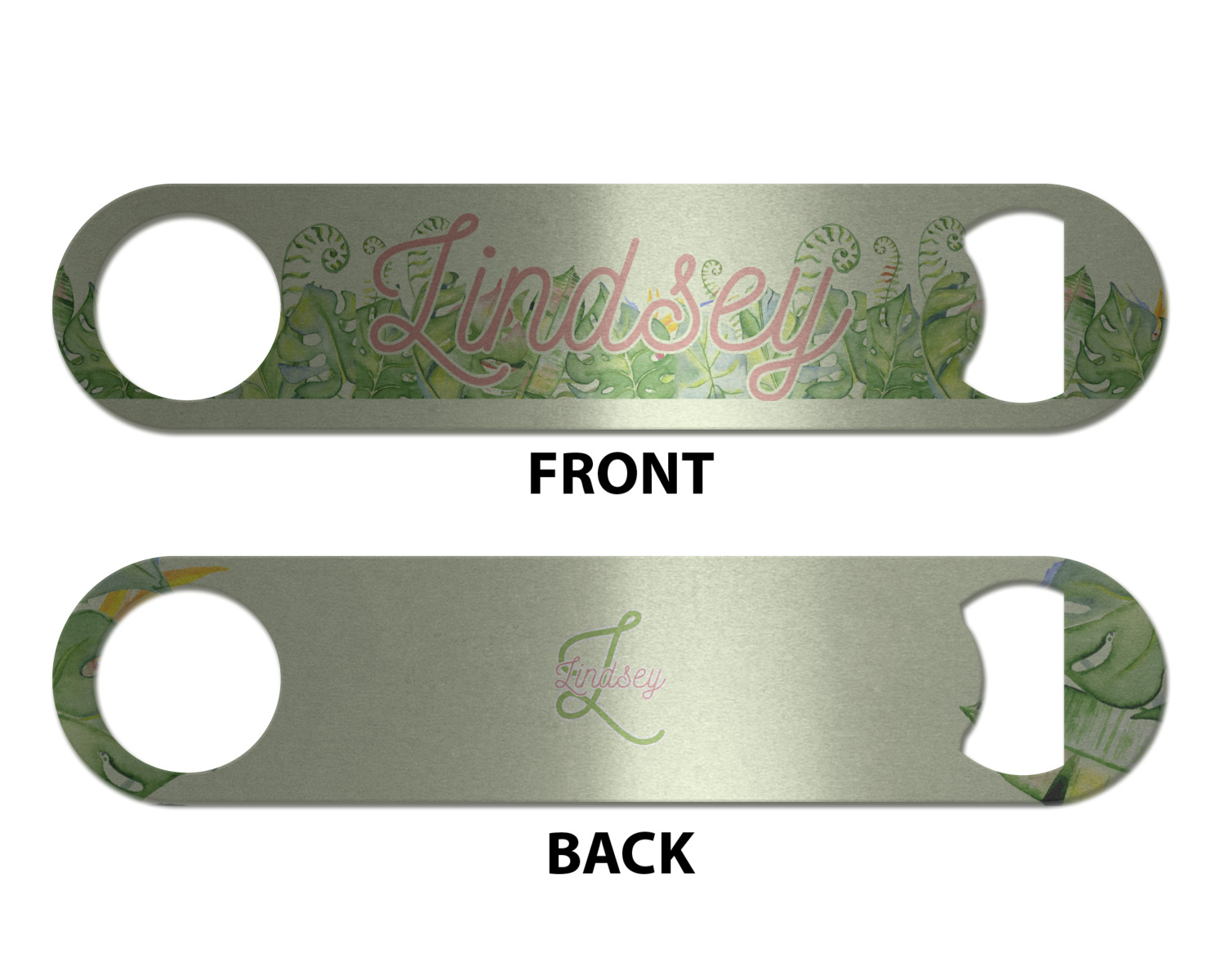 Made from stainless steel, these beer bottle openers are 7 by 1.625 inches, giving you plenty of leverage when trying to open a stubborn bottle. On one end of this personalized bottle opener, you'll find a circular hole for you to hang and display your opener. On the opposite end, you'll find the tool used for opening bottles. This opener in particular has the same structure and style as professional bartender bottle openers. Your customization is sublimated onto both the back and front, and both sides can be customized individually. Choose from one of our two base colors - white or silver.