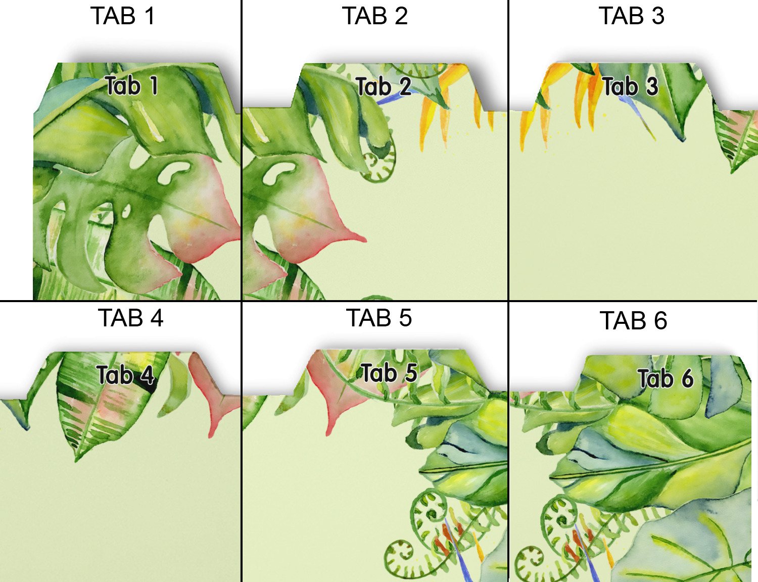 Made from a durable heavy weight card stock, these page dividers are printed on one side with your custom design. Customize the title on each tab as well as the background on each divider to make them unique to you. The possibilities are endless!