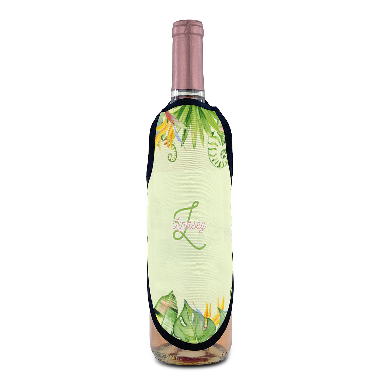 This design has a calming light green background. The foreground is filled with pops of dark green, lime, yellow, and a soft red. The tropical leaves really pop out at you as if they were real. The leaves are in a border or frame sort of formation surrounding a name and initial. This is a gorgeous design that looks a little bit different on each product it is on.