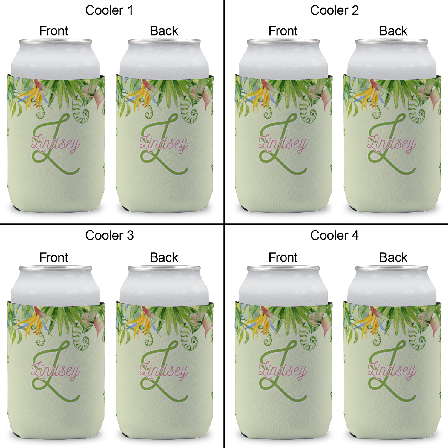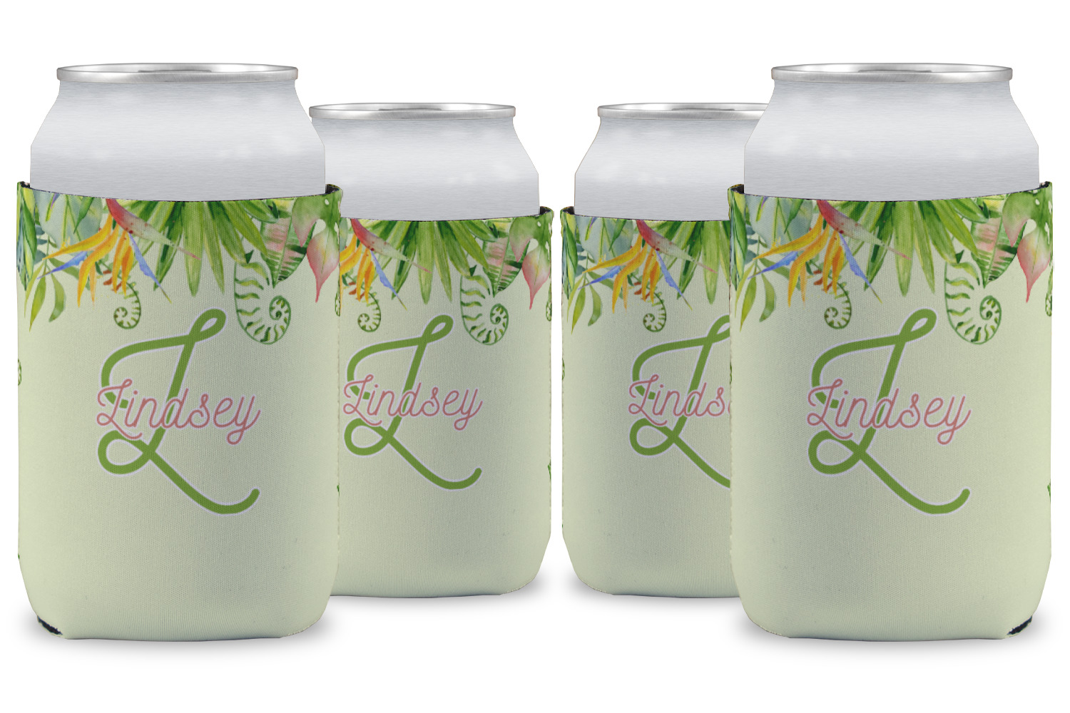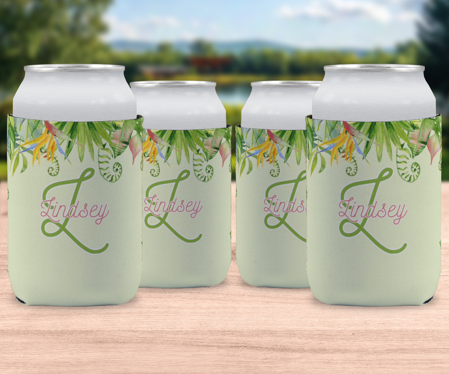 This design has a calming light green background. The foreground is filled with pops of dark green, lime, yellow, and a soft red. The tropical leaves really pop out at you as if they were real. The leaves are in a border or frame sort of formation surrounding a name and initial. This is a gorgeous design that looks a little bit different on each product it is on.